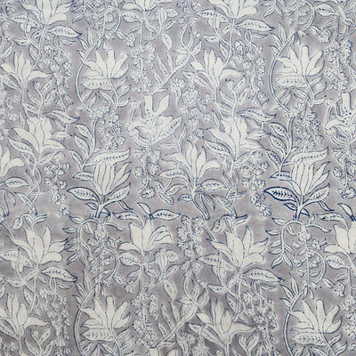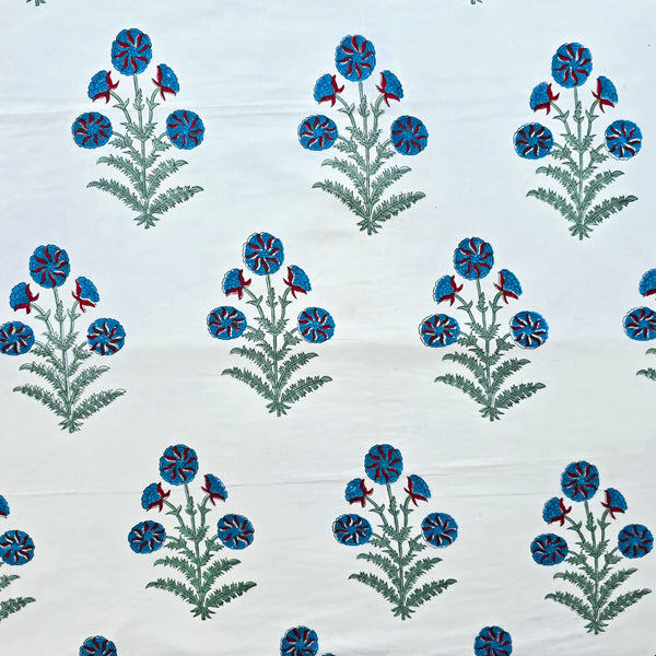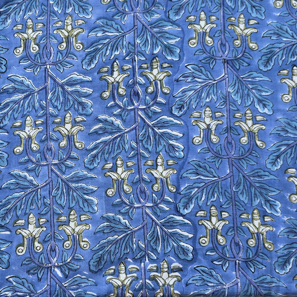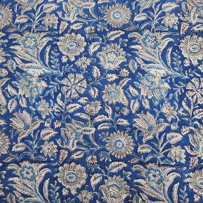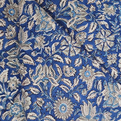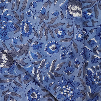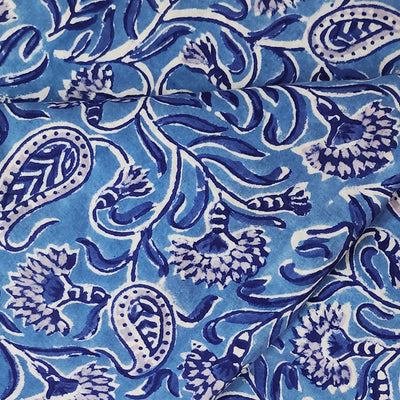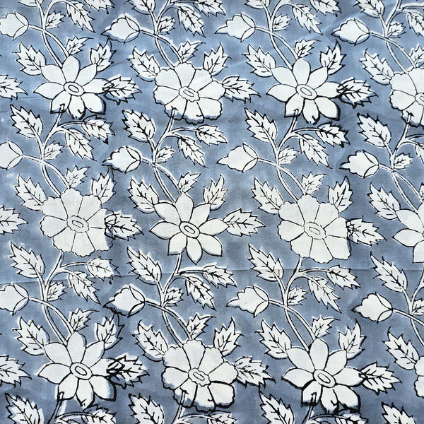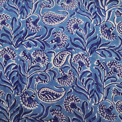 Pure Cotton Jaipuri Powder Blue With White Flower Creeper Hand Block Print Fabric