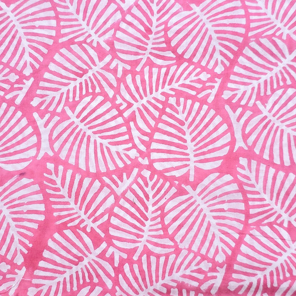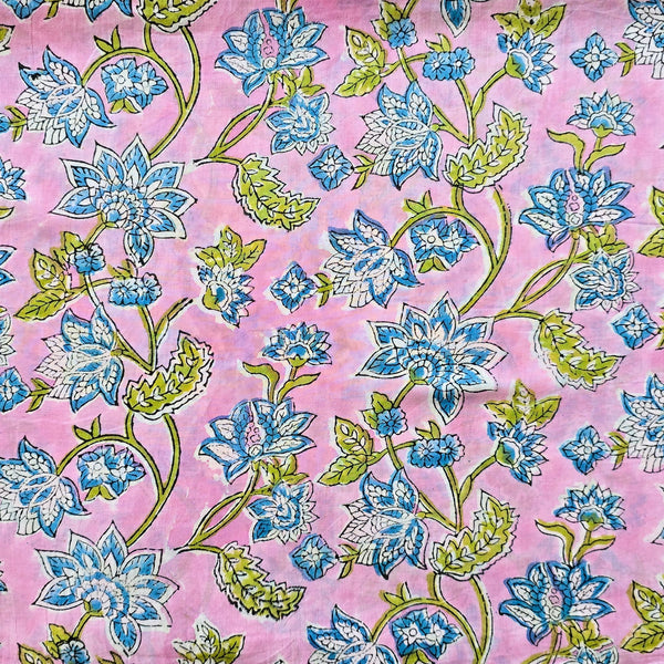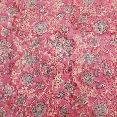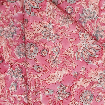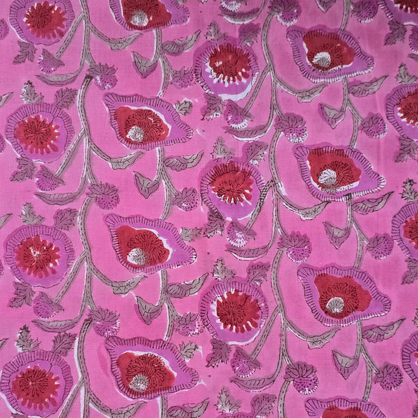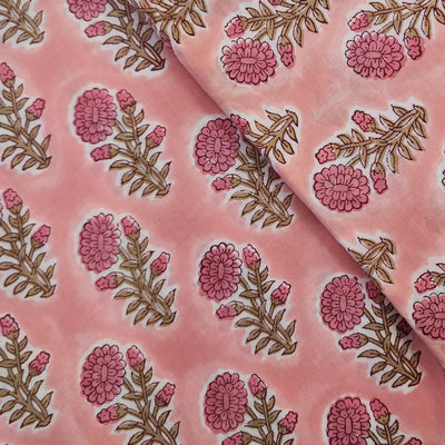 Pure Cotton Jaipuri Pink With Flower Plant Motif Hand Block Print Fabric