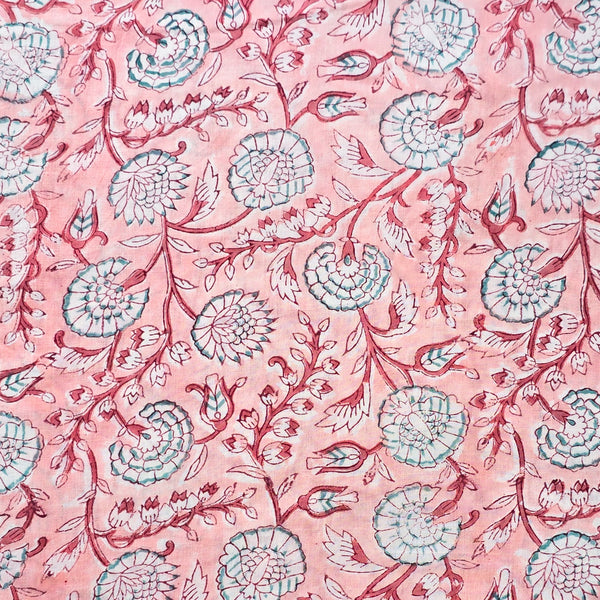 Pure Cotton Jaipuri Peach With Dusky Pink Flower Jaal Hand Block Print Fabric