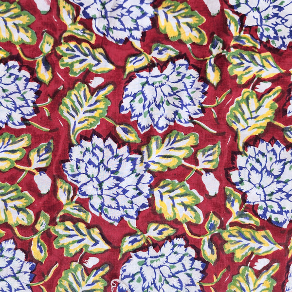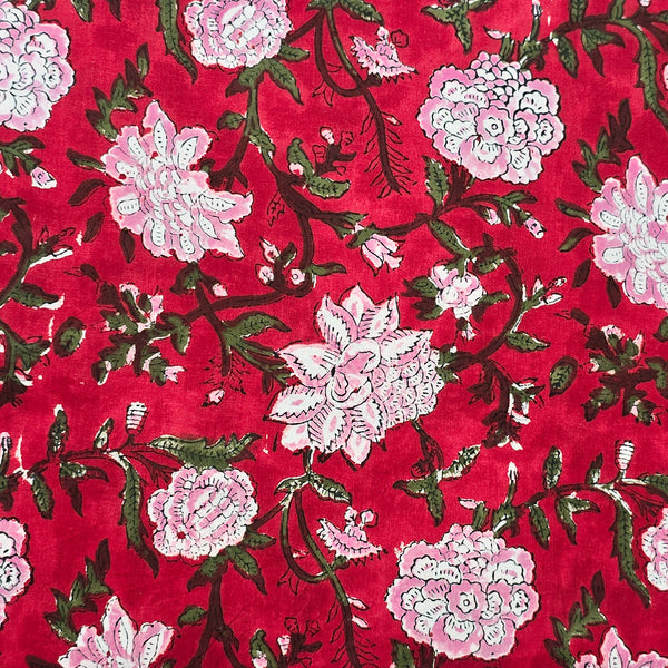 Pure Cotton Jaipuri Red With White Flower Creeper Hand Block Print Fabric