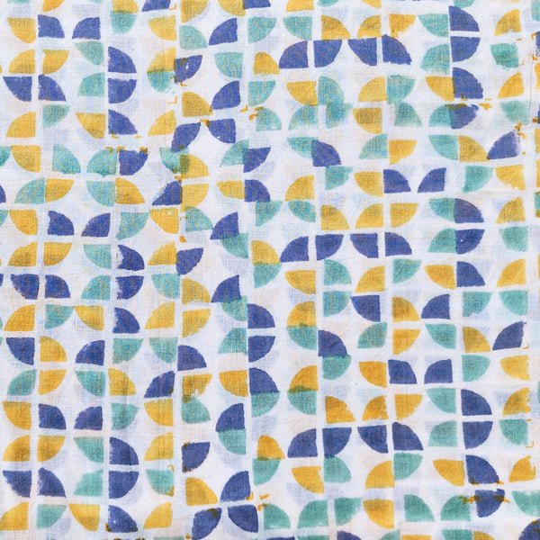 Pure Cotton White With Yellow Sun Motif Hand Block Print Fabric