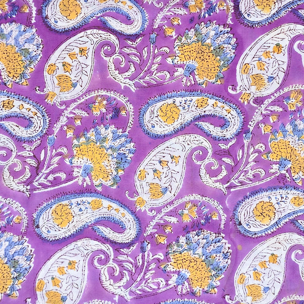 Pure Cotton Purple With Pink Floral Design Hand Block Print Fabric