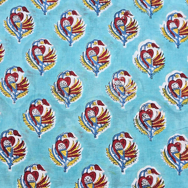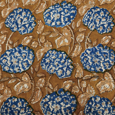 Pure Cotton Rust Blue With Floral Design Hand Block Print Fabric