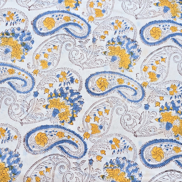 Pure Cotton Jaipuri White With Yellow Flower Hand Block Print Fabric