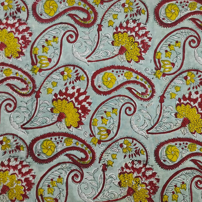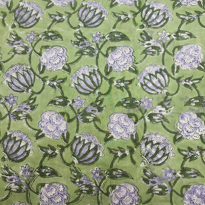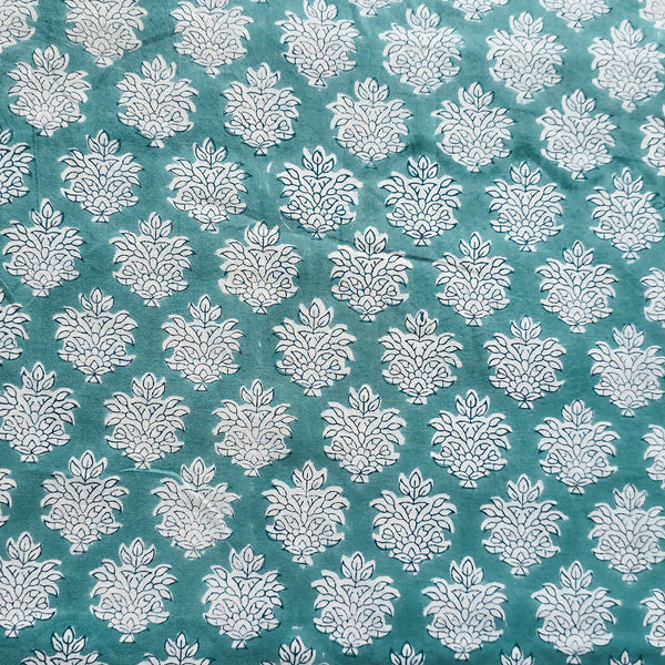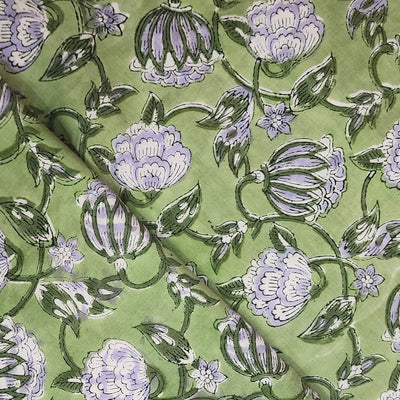 Pure Cotton Jaipuri Mint Green With Floral Design Hand Block Print Fabric