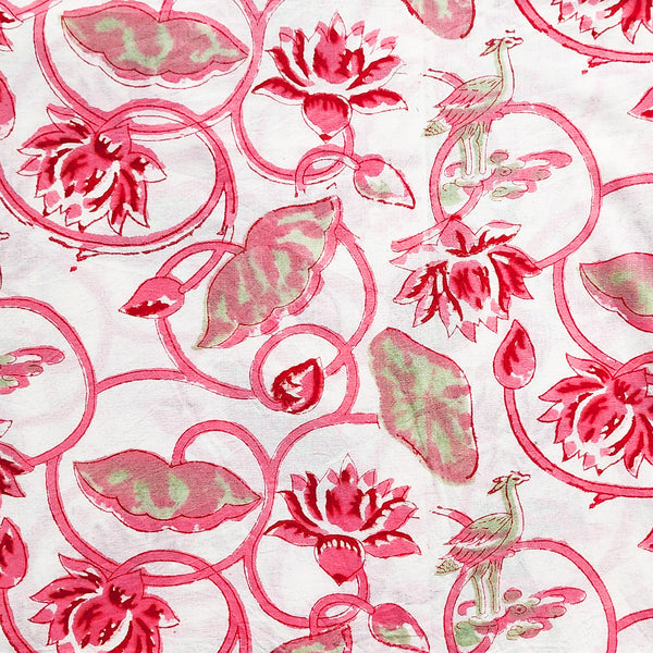 Pure Cotton Pink With White Flower Jaal Hand Block Print Fabric