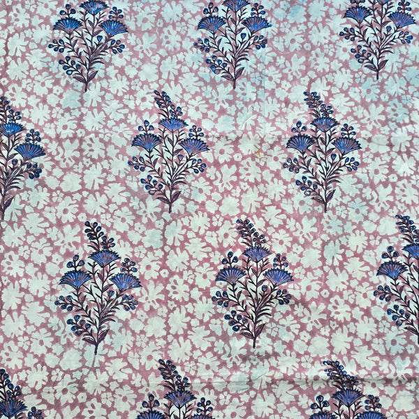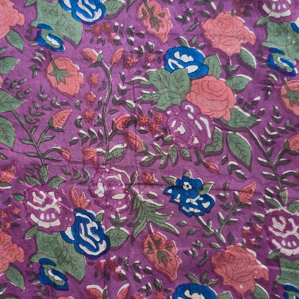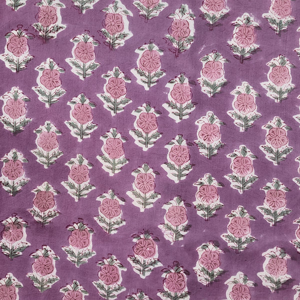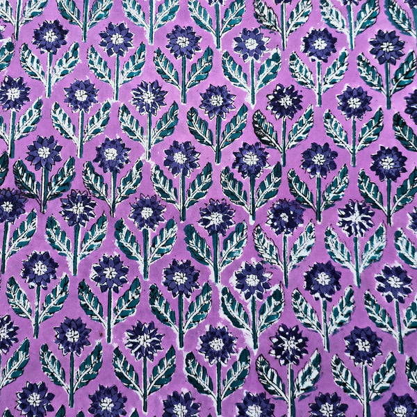 Pure Cotton Violet With Pink Floral Design Hand Block Print Fabric