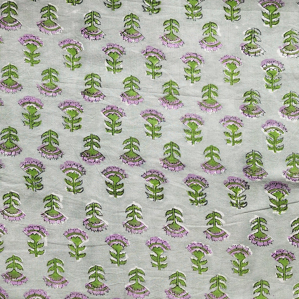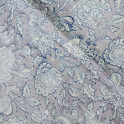 Pure Cotton Light Purple With Floral Design Hand Block Print Fabric
