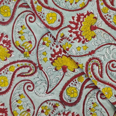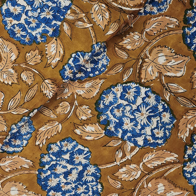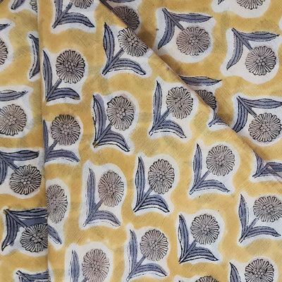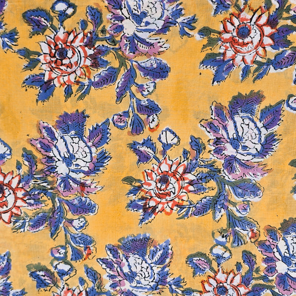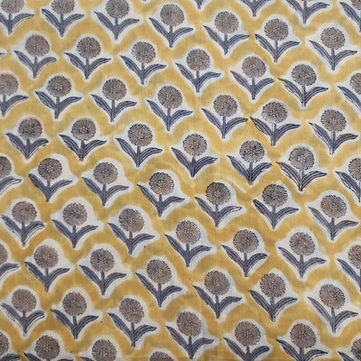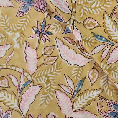 Pure Cotton Mustard With Floral Design Hand Block Print Fabric