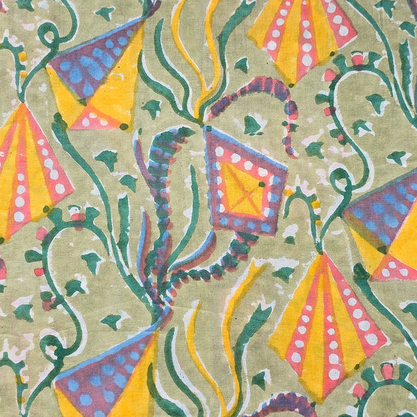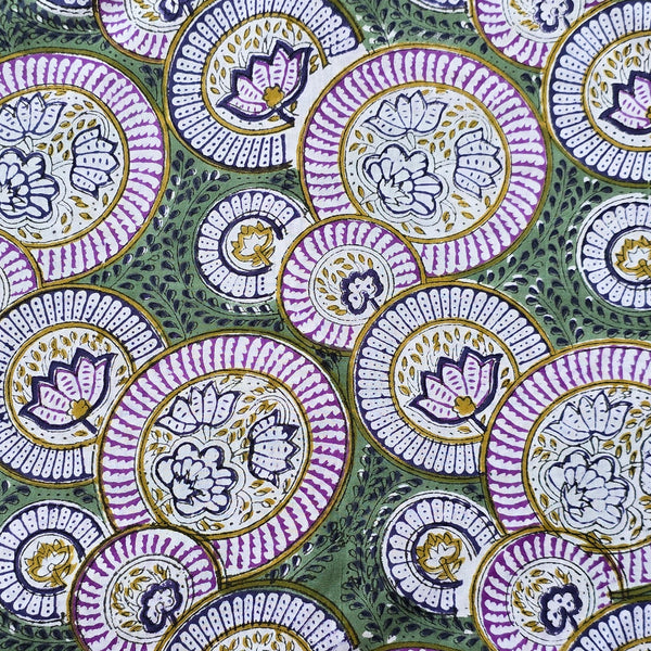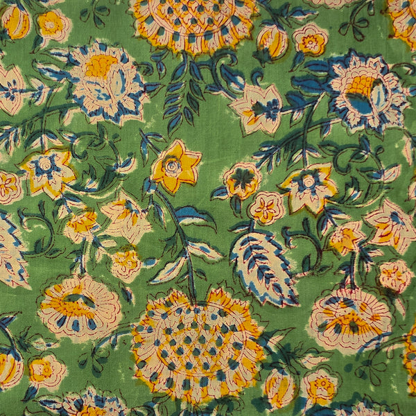 Pure Cotton Green With Wild Flower Jaal Hand Block Print Fabric