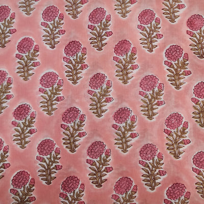 Pure Cotton Jaipuri Peach With Flower Jaal Hand Block Print Fabric