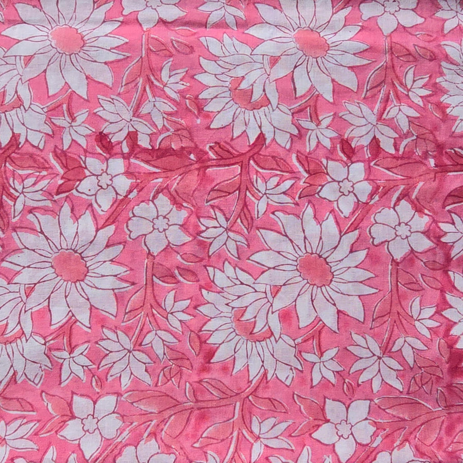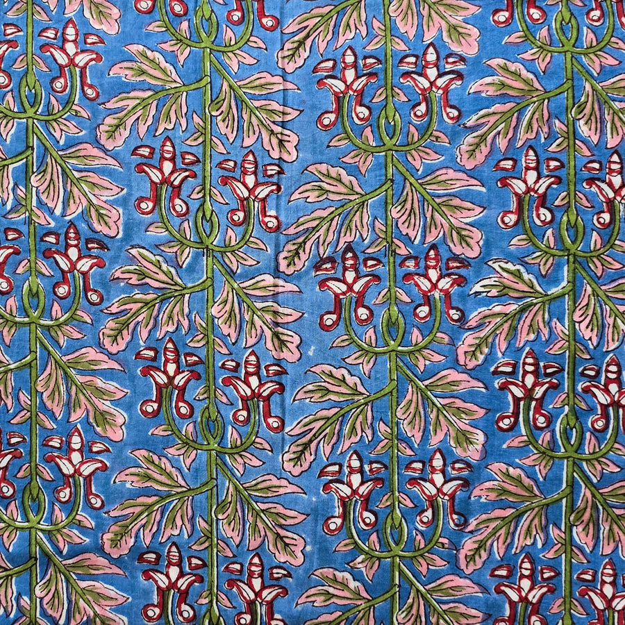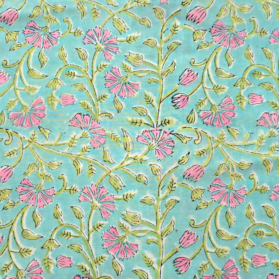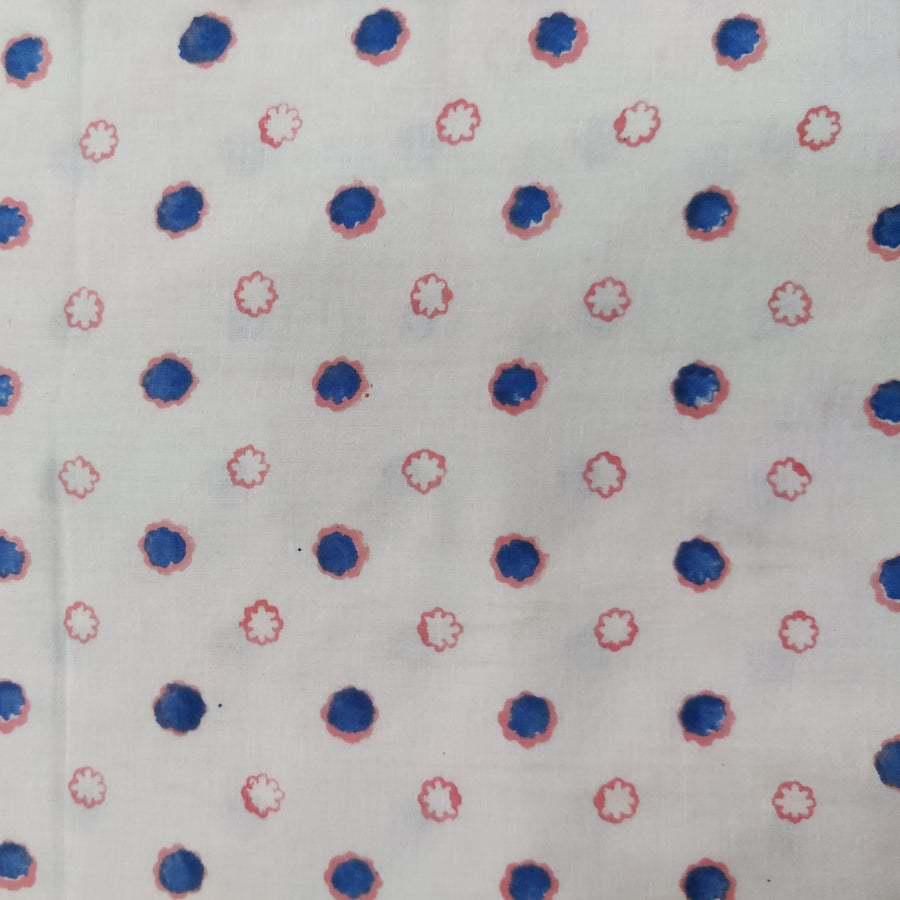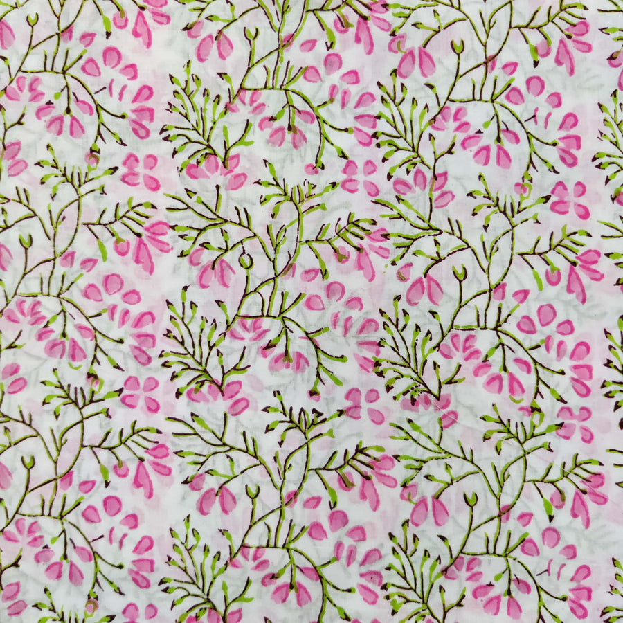 Pure Cotton White Jaipuri With Pink And Blue Wild Fruit Jaal Hand Block Print Fabric