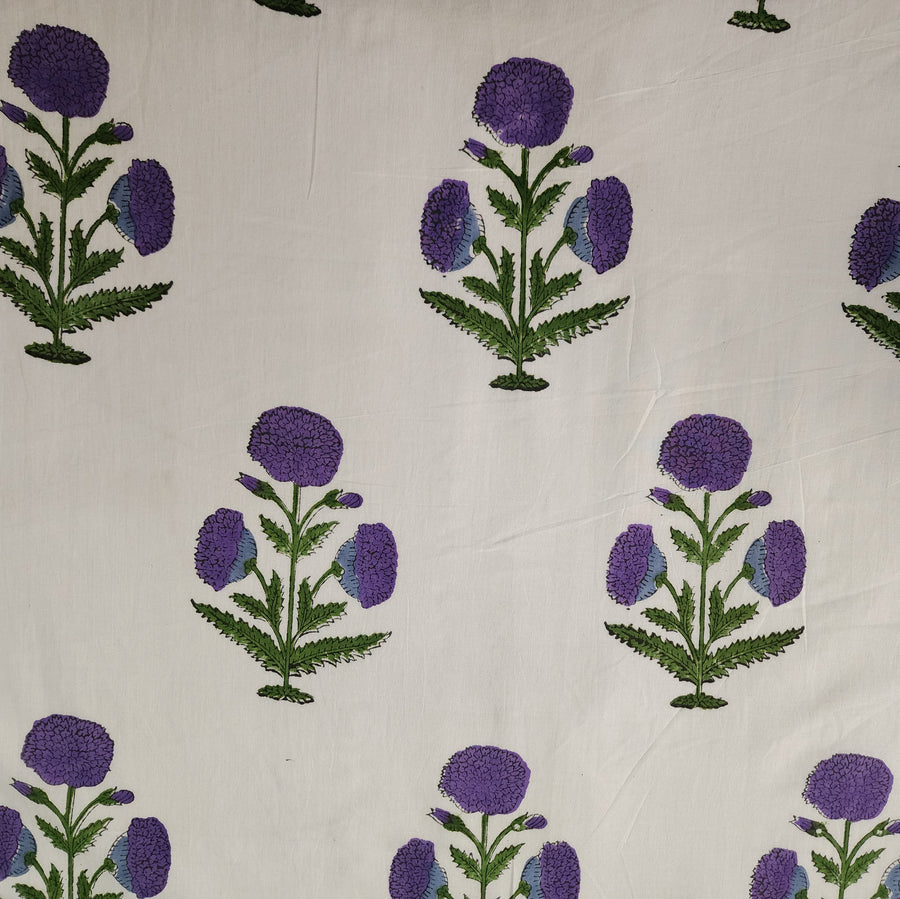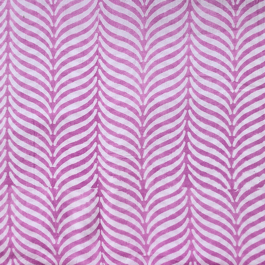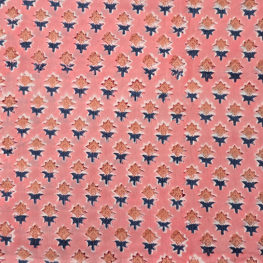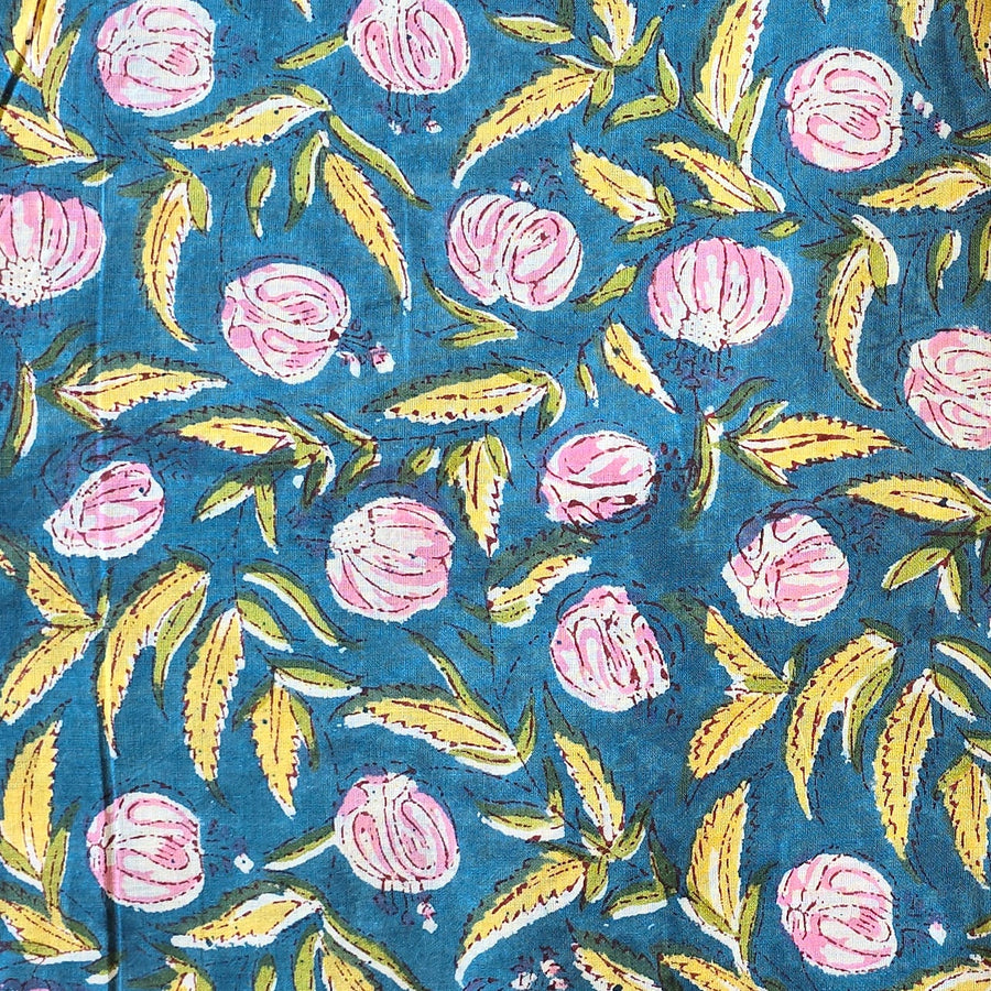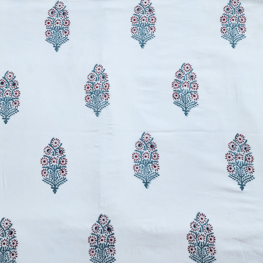Pure Cotton White Jaipuri With Pink And Blue Wild Fruit Jaal Hand Block Print Fabric