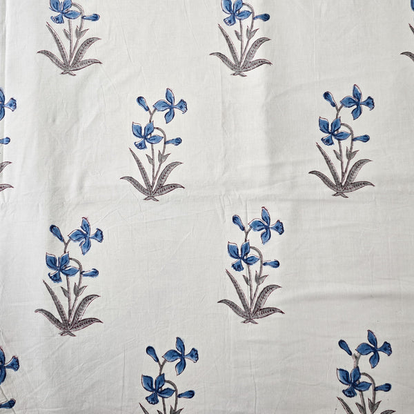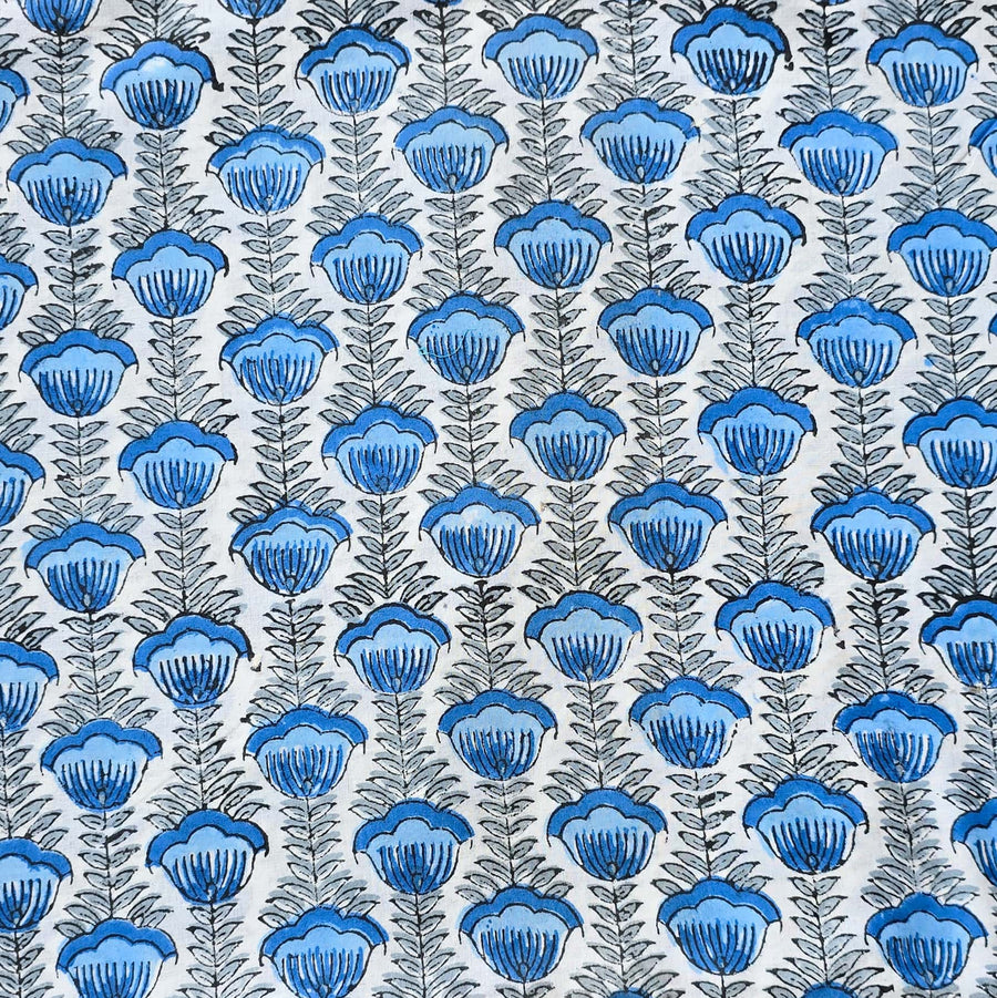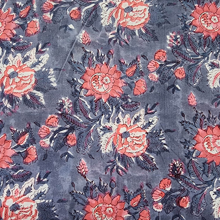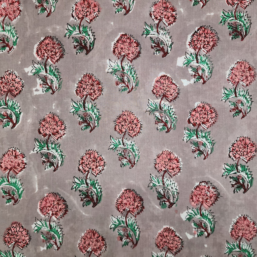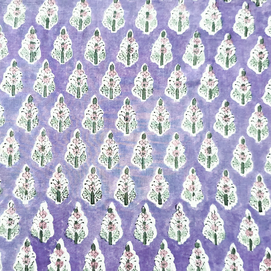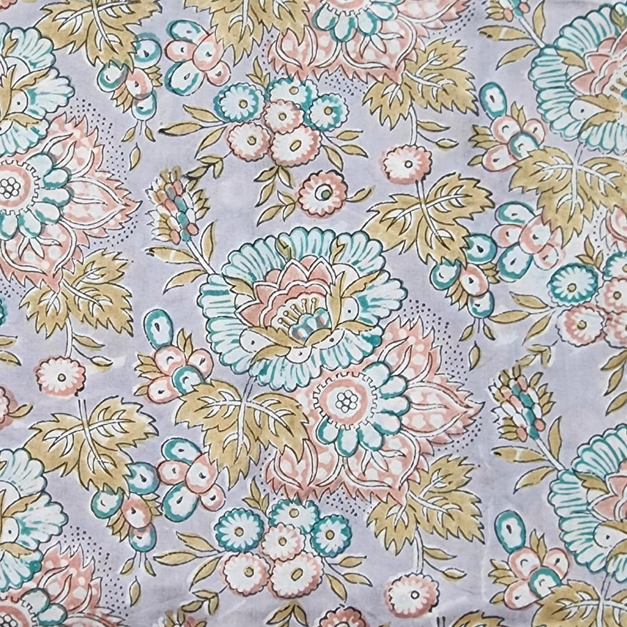 Pure Cotton White Jaipuri With Pink And Blue Wild Fruit Jaal Hand Block Print Fabric