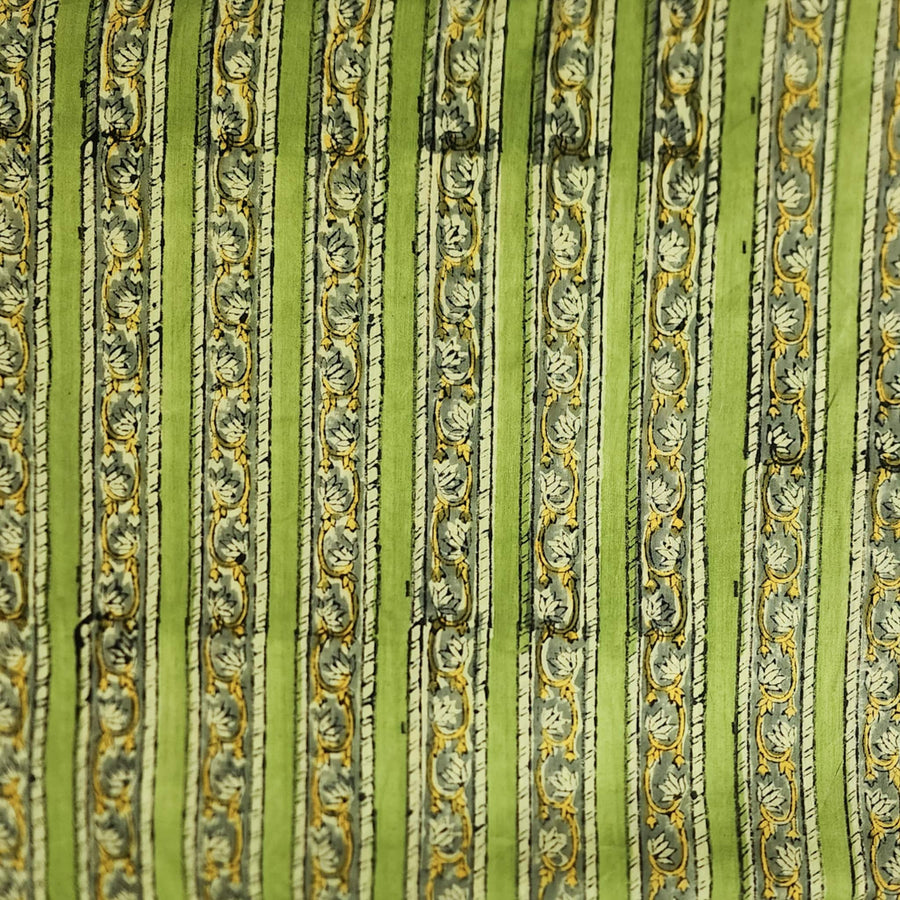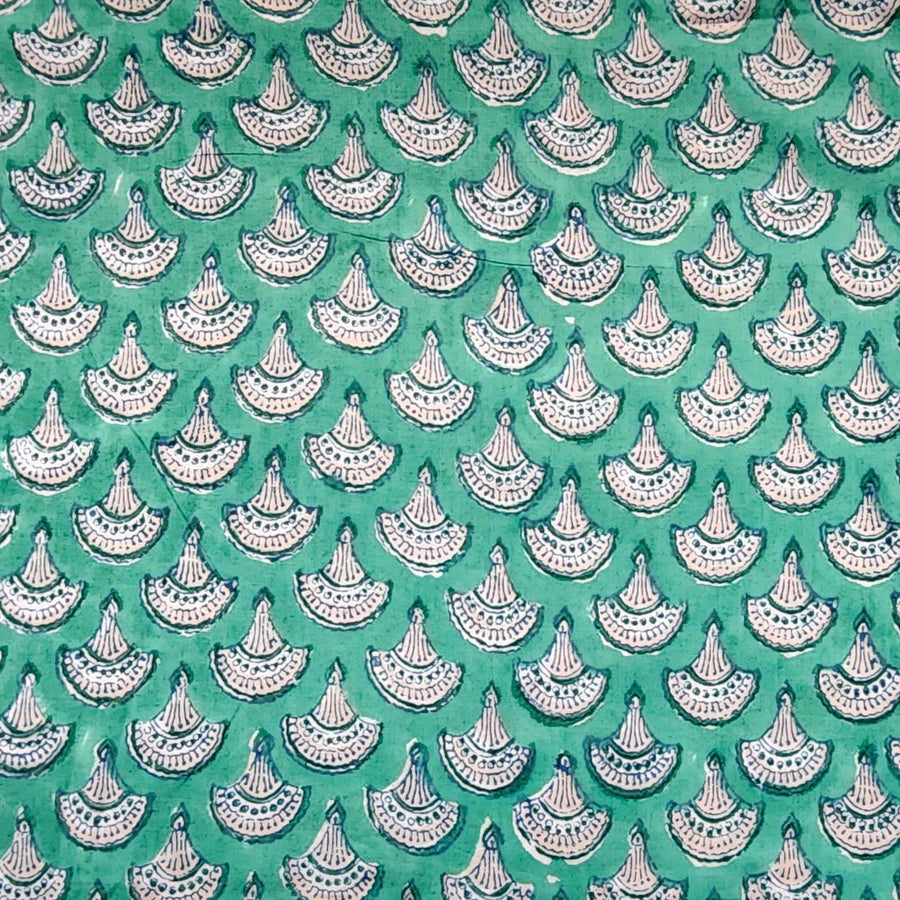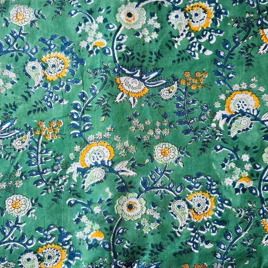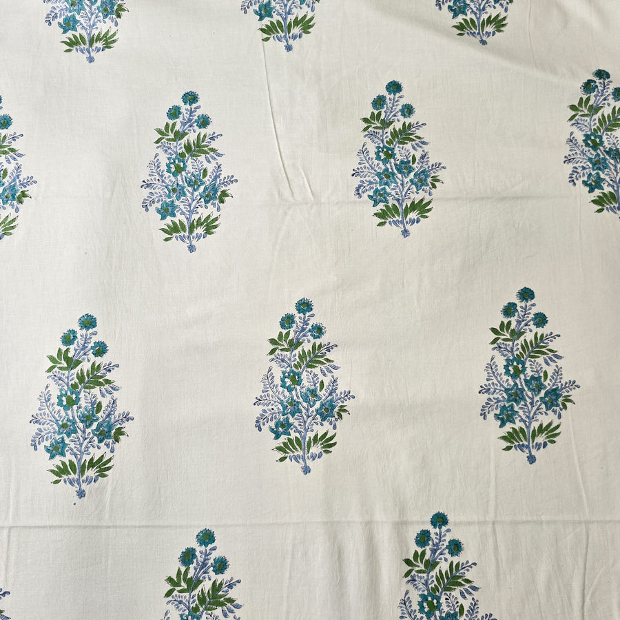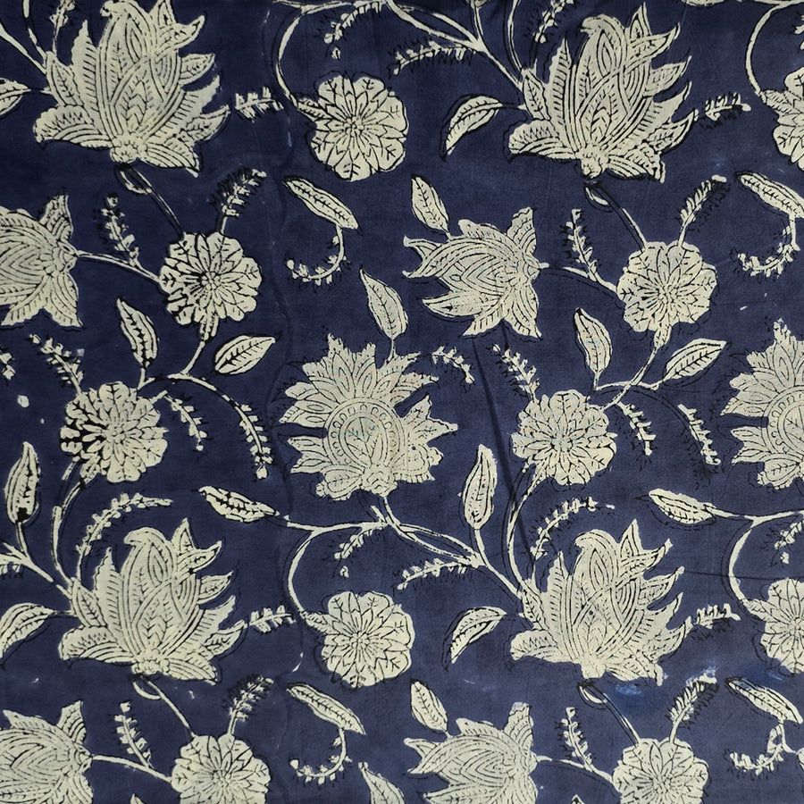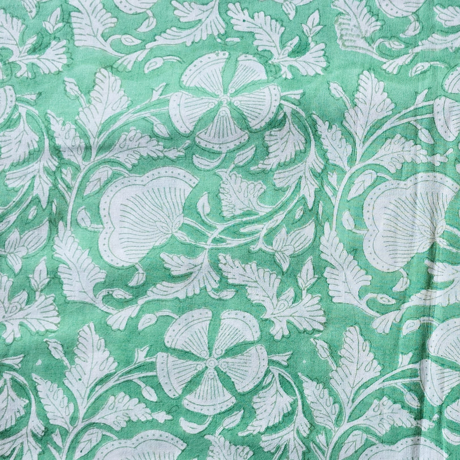 Pure Cotton Jaipuri White With Wild Tropical Mughal Motif Hand Block Print Fabric