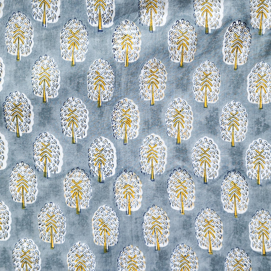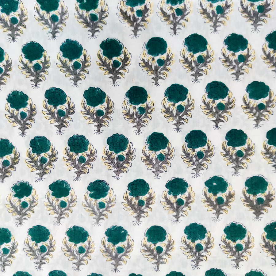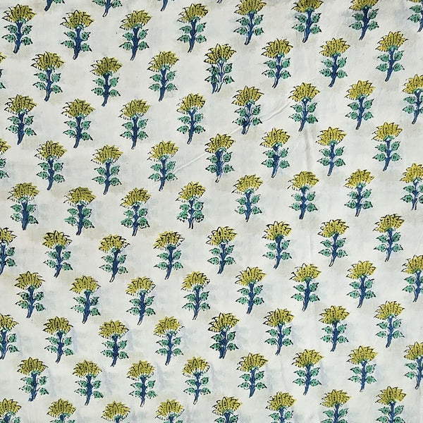 Pure Cotton Jaipuri White With Yellow Mustard Bud Motifs Hand Block Print Fabric