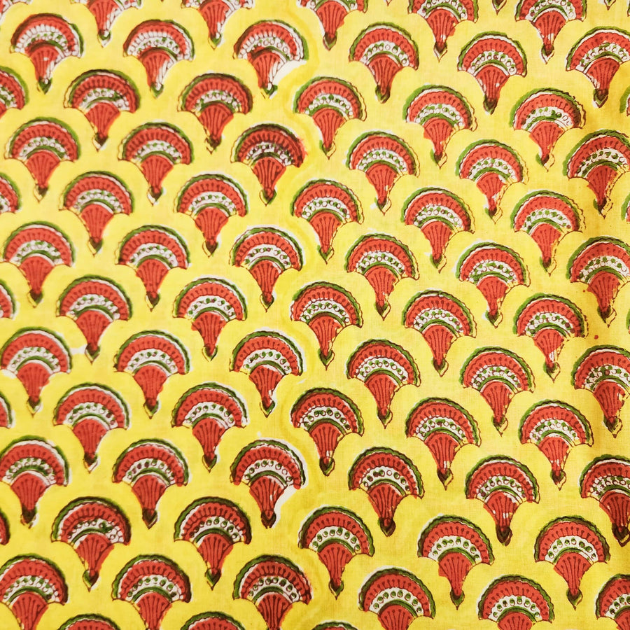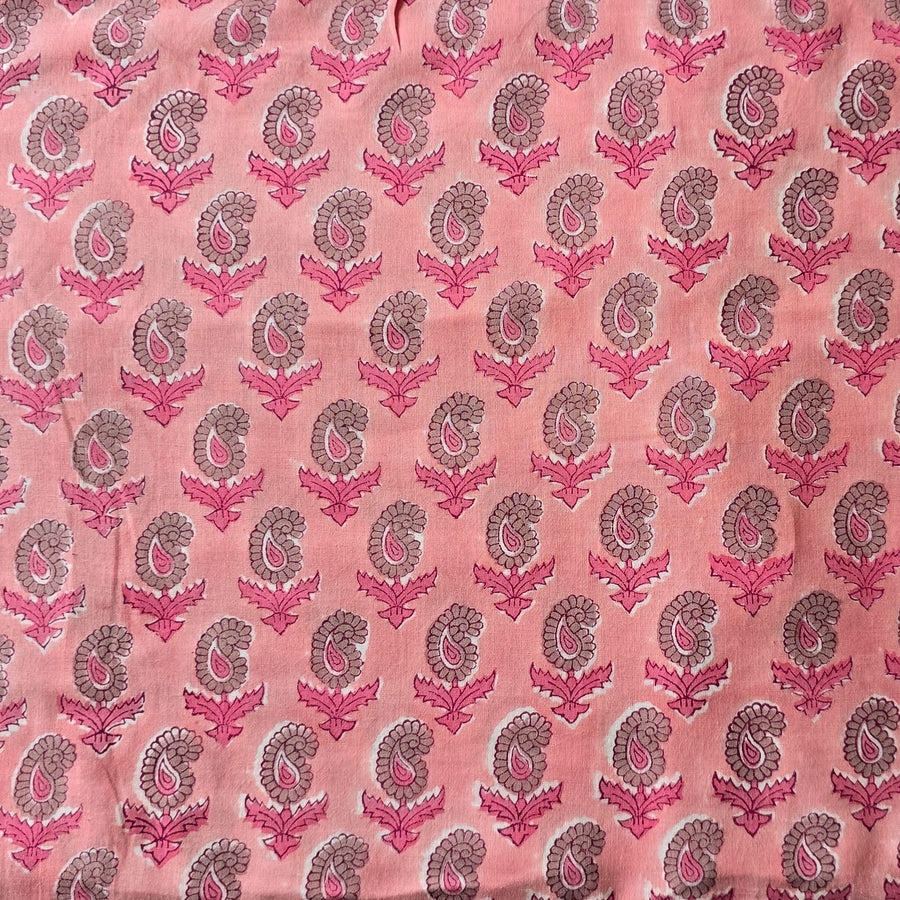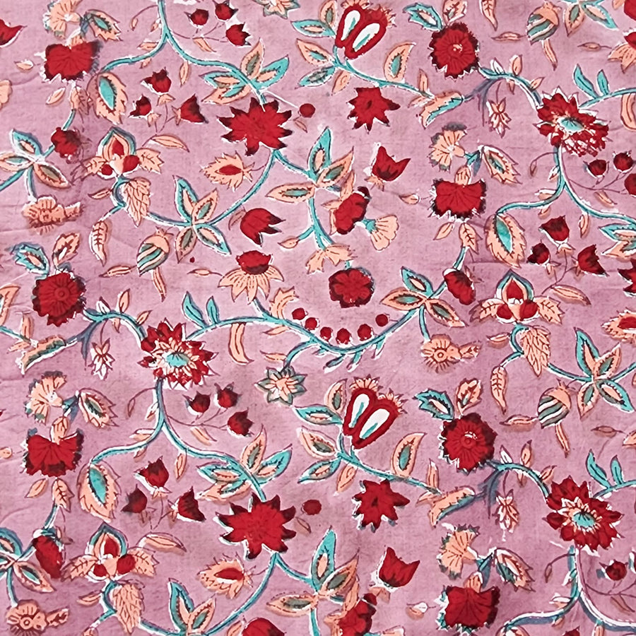 Pure Cotton Jaipuri Red With White And Peach Jaal Hand Block Print Fabric