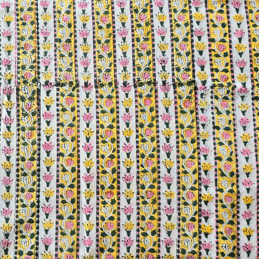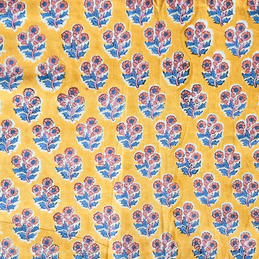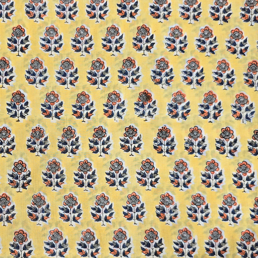 Pure Cotton Jaipuri Yellow With Green Leaves Overlapping Hand Block Print Fabric