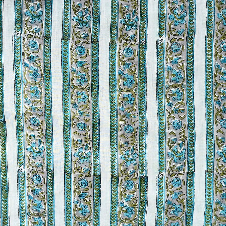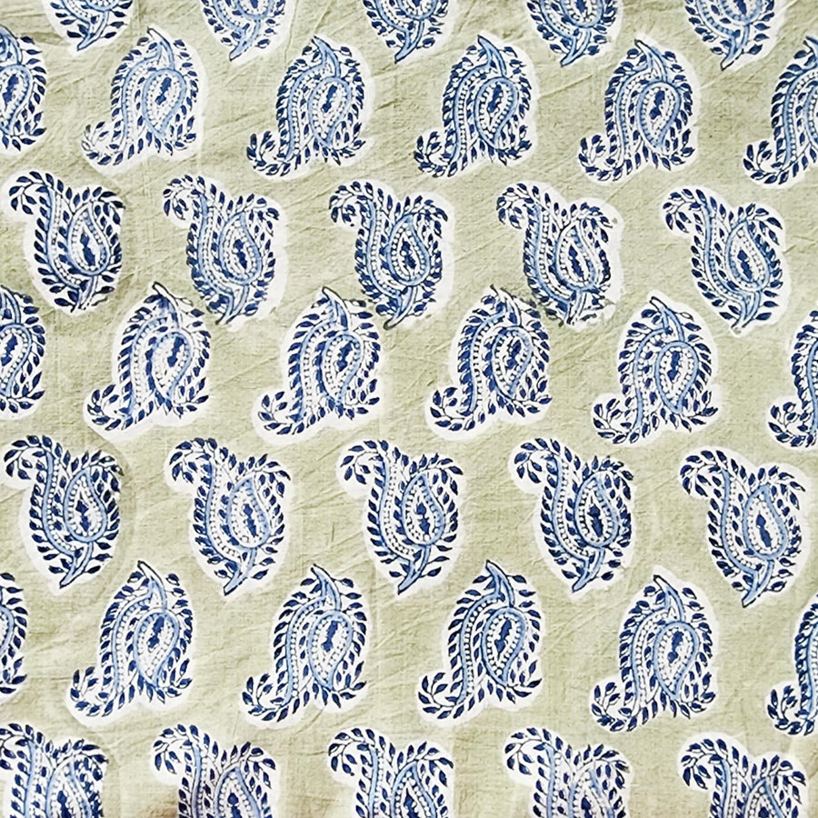 Pure Cotton Jaipuri Mint Green With Blue Flower Jaal Hand Block Print Fabric