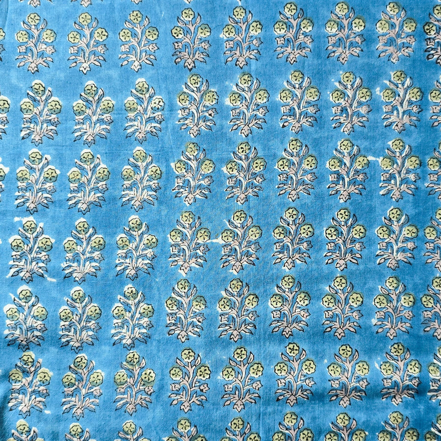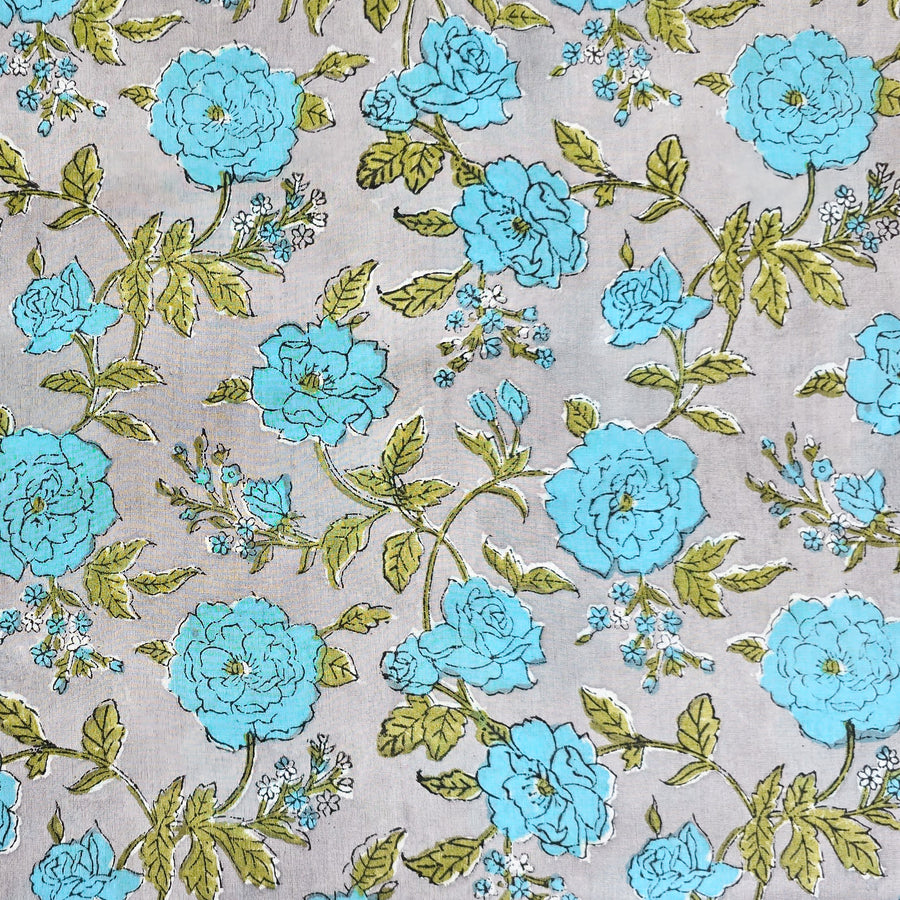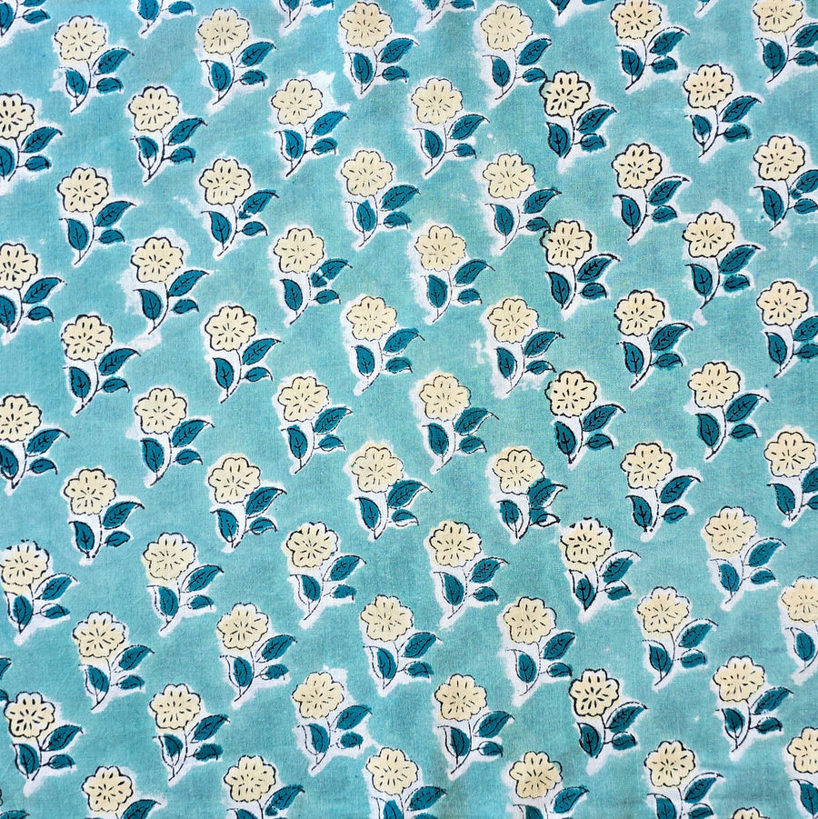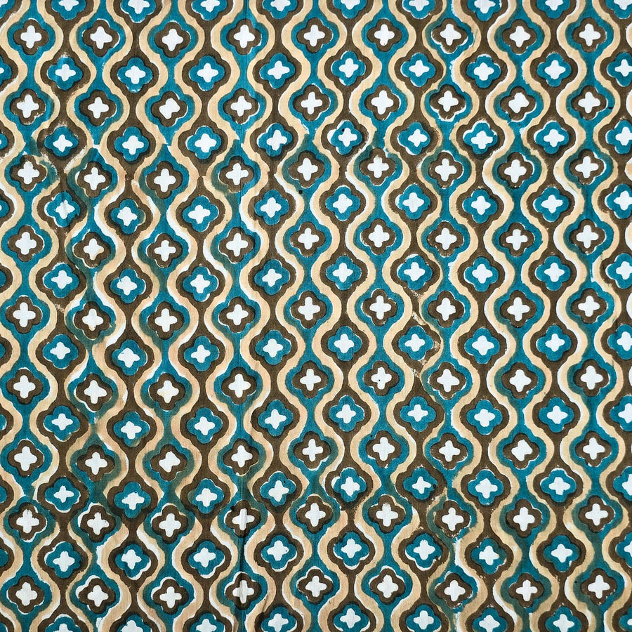 Pure Cotton Jaipuri Teal Blue With Flower Jaal Hand Block Print Fabric