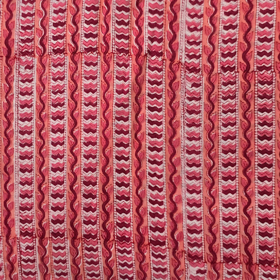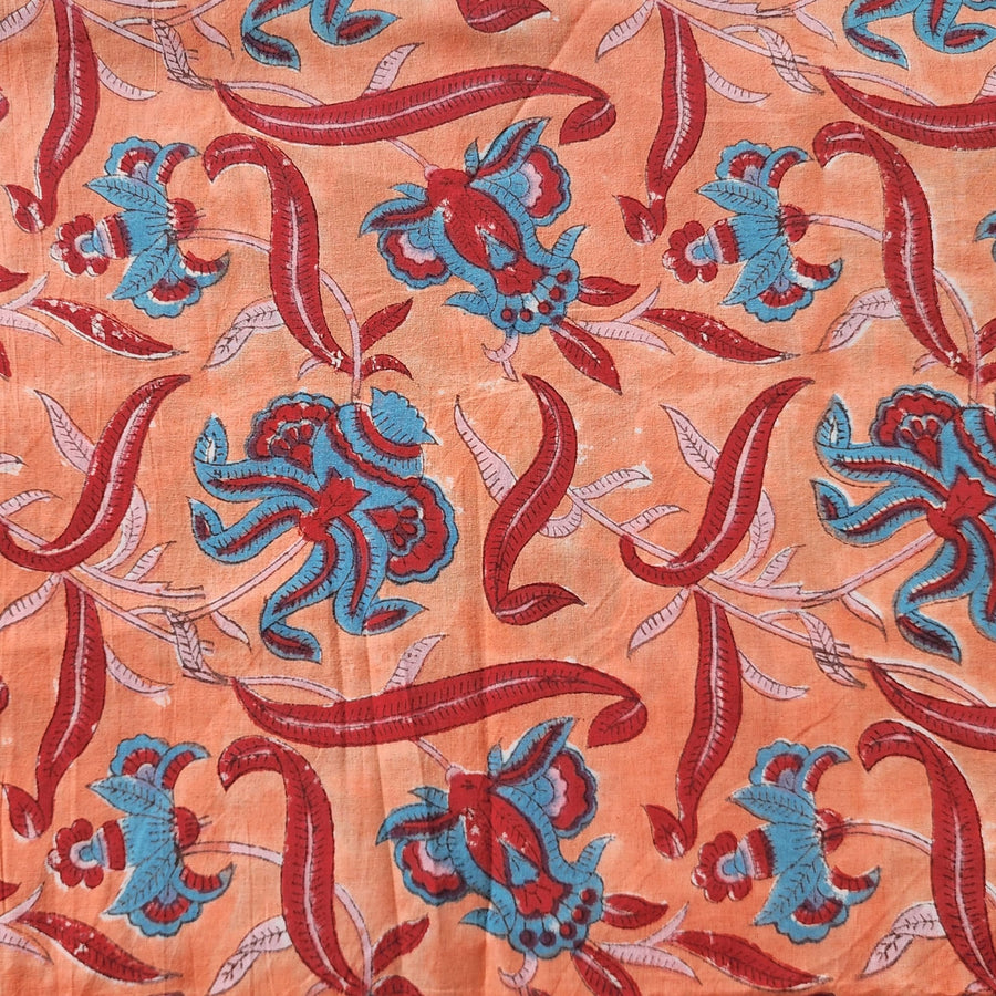 Pure Cotton Jaipuri Pink With Peach Flower Jaal Hand Block Print Fabric