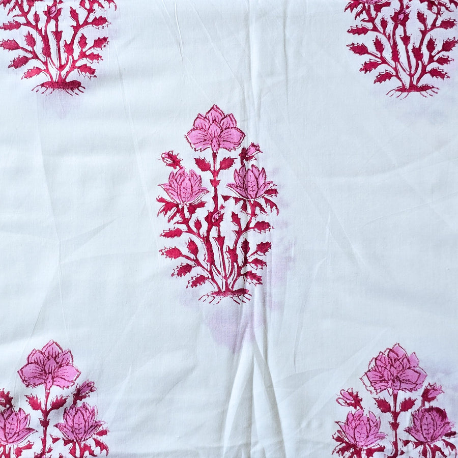 Pure Cotton Jaipuri White With Pink Floral Design Hand Block Print Fabric