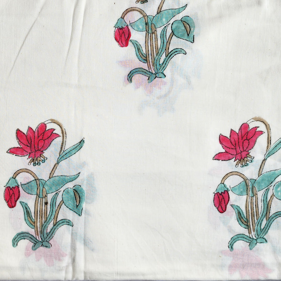 Pure Cotton Jaipuri White With Floral Design Motif Hand Block Print Fabric