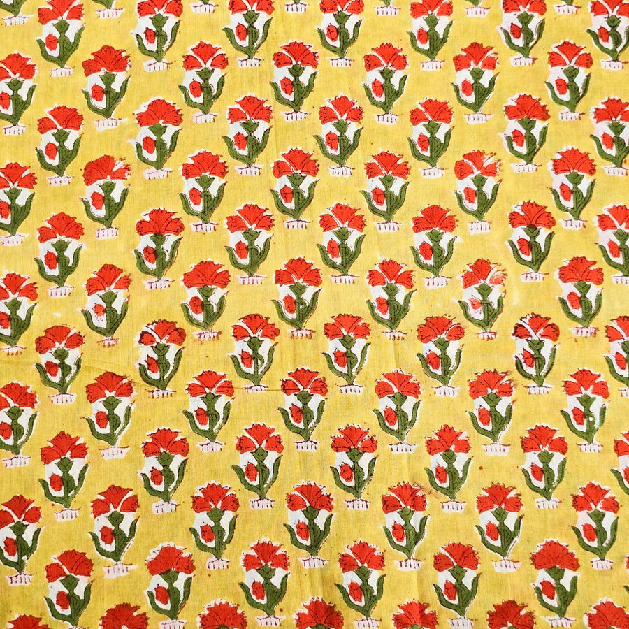Pure Cotton Jaipuri Maroon With Yellow Big Flower Jaal Hand Block Print Fabric