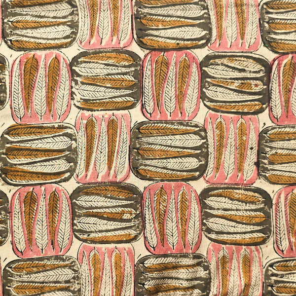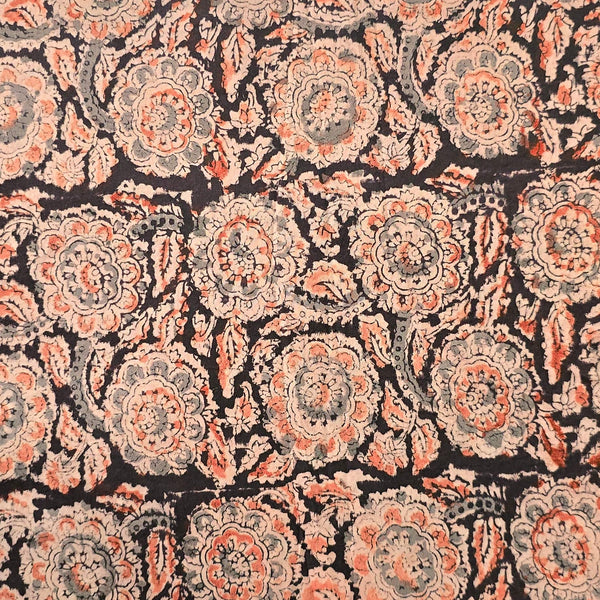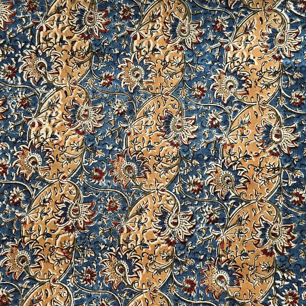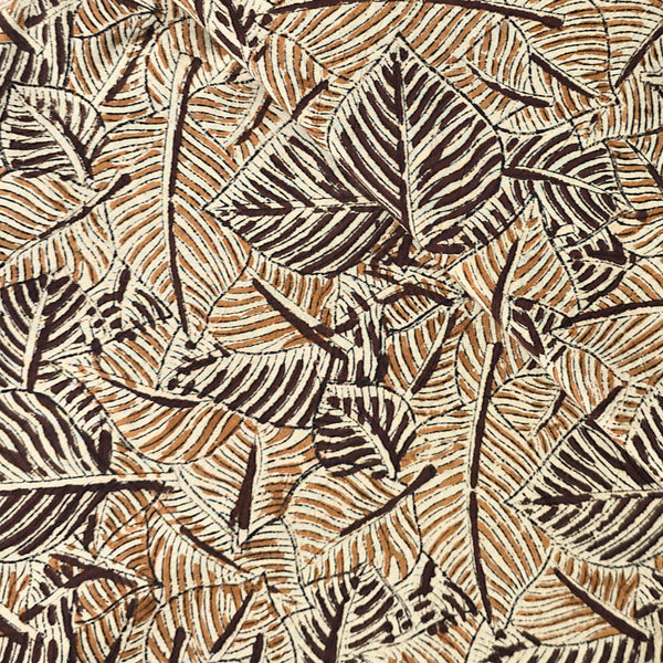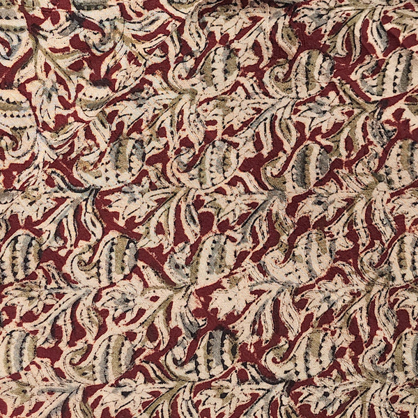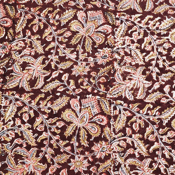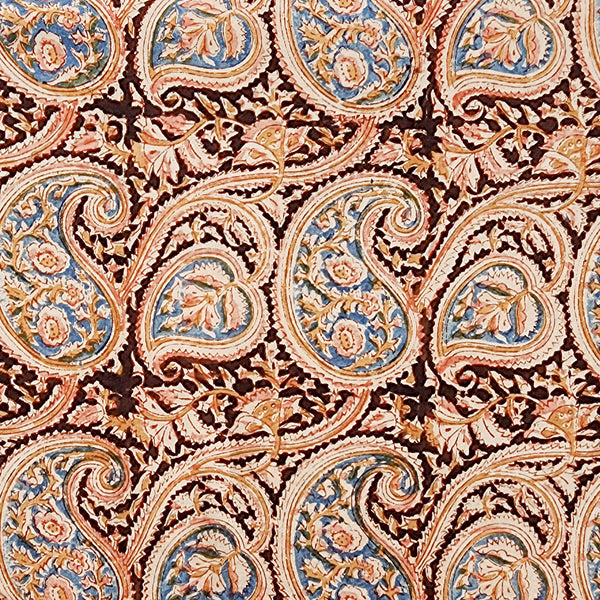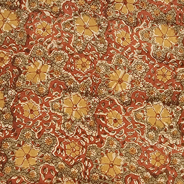 Pure Cotton Mul Kalamkari Brownish-Orange With Kairi Hand Block Print Fabric