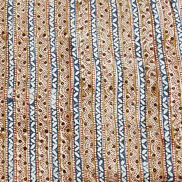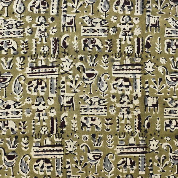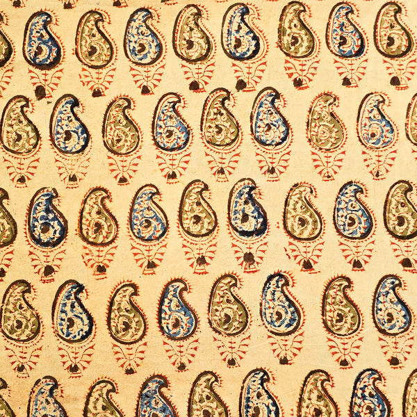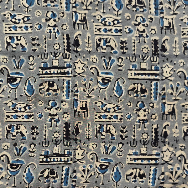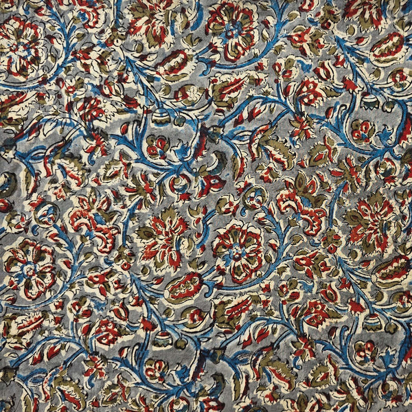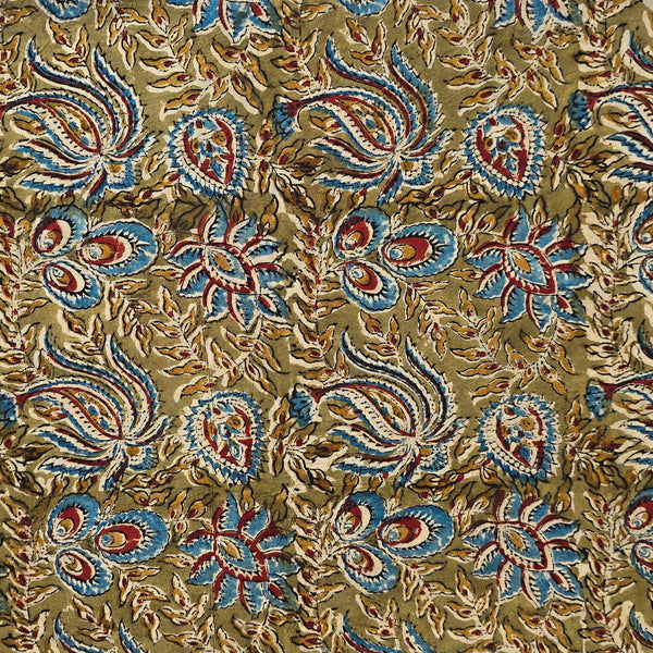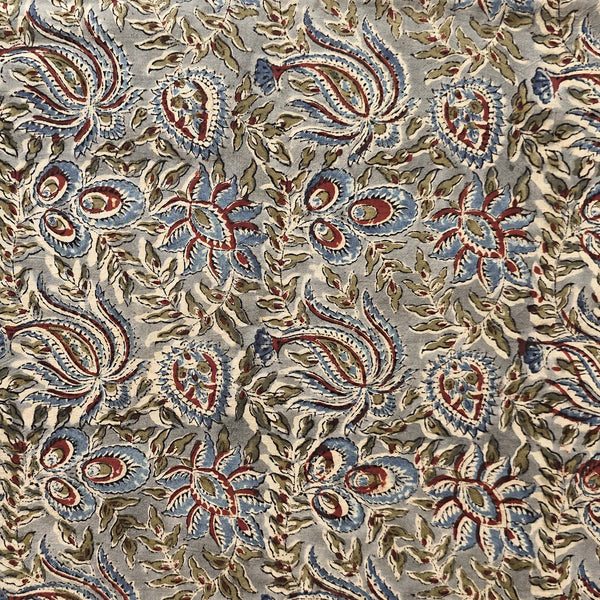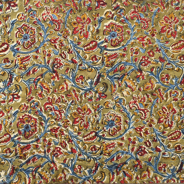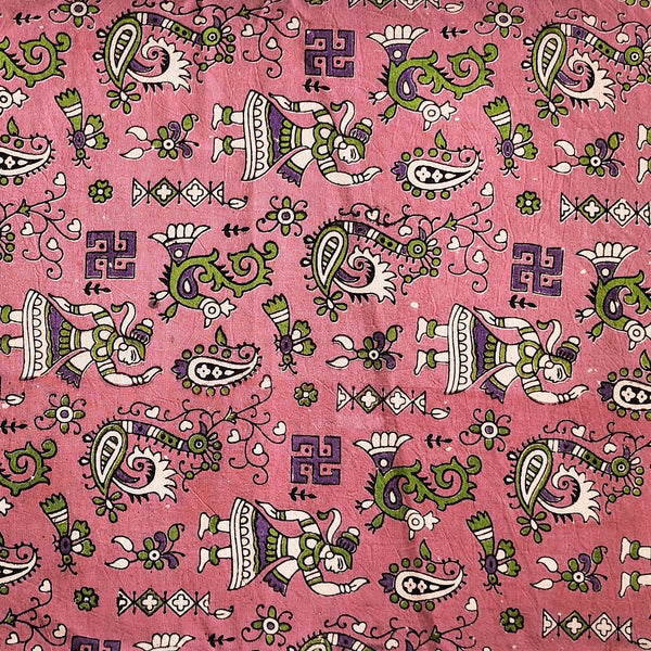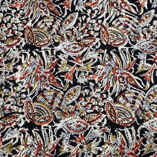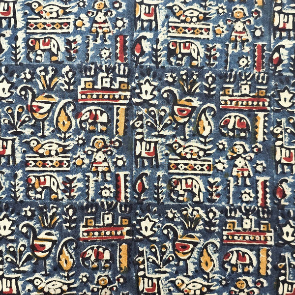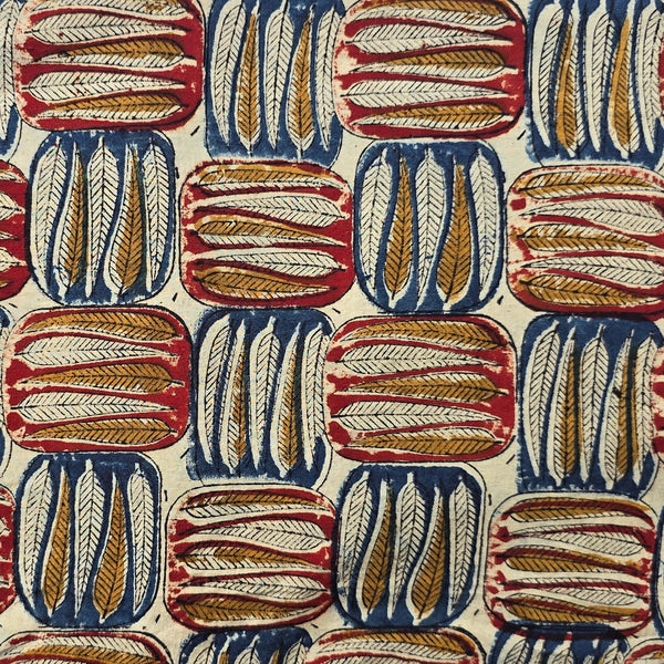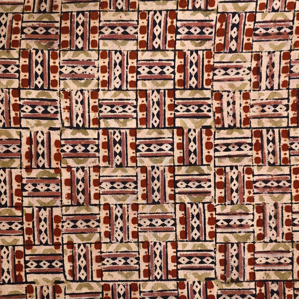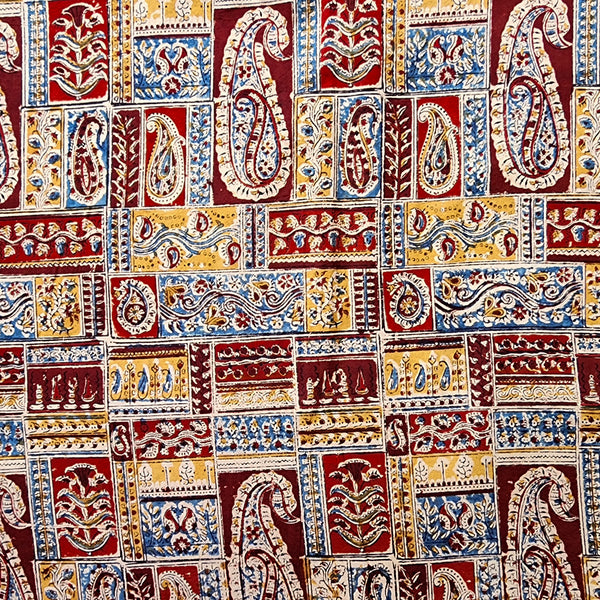 Pure Cotton Kalamkari Multicolor Blocks With Kairi Jaal Hand Block Print Fabric