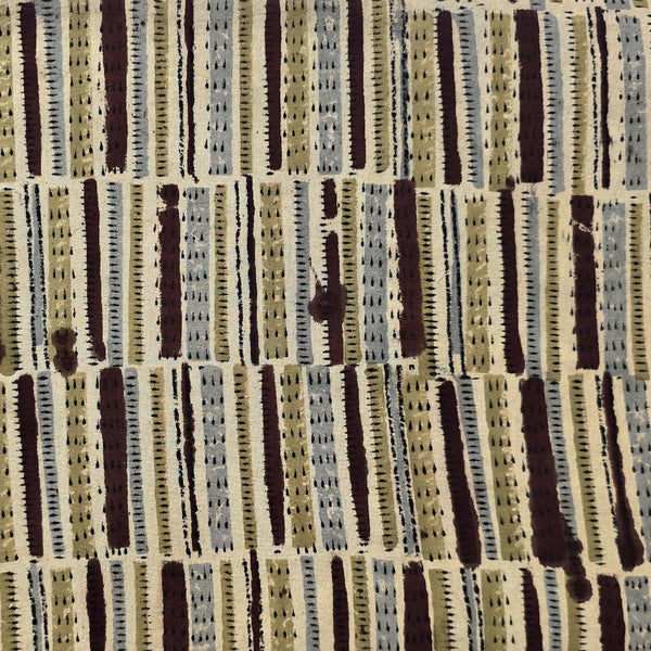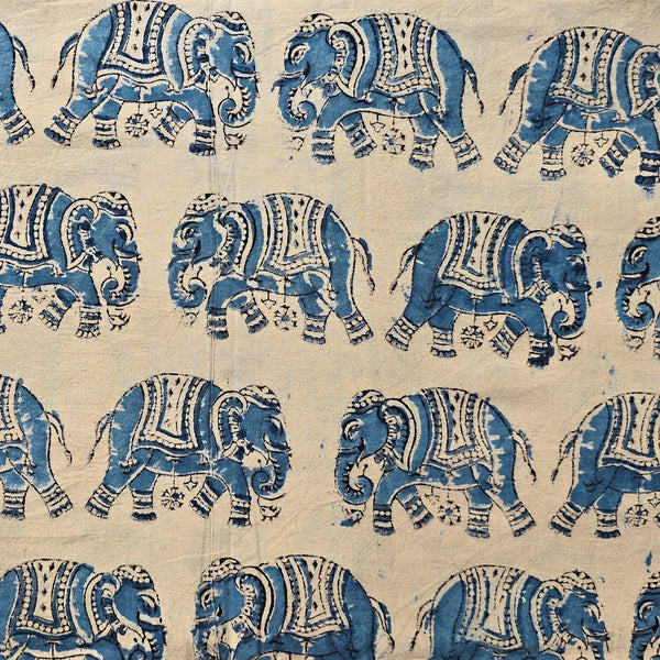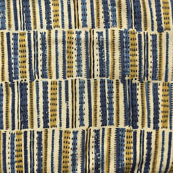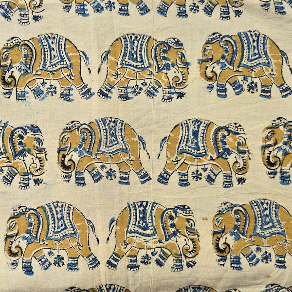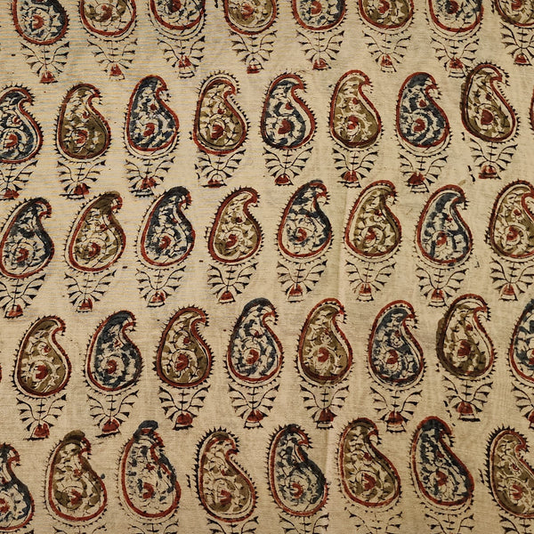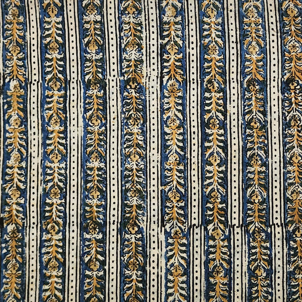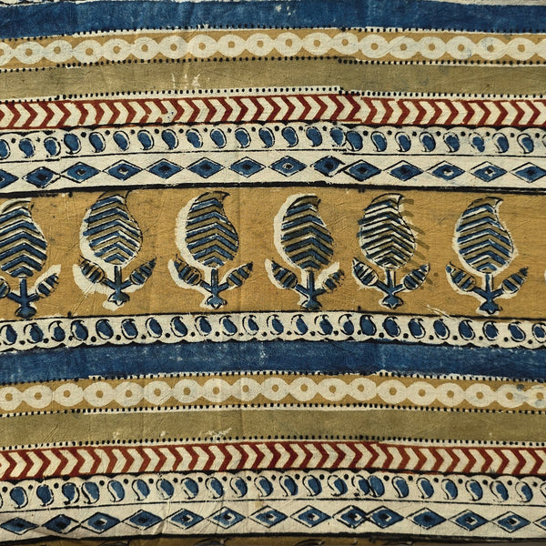 Pure Cotton Mul Kalamkari Cream With Intricate Design Border Stripes Hand Block Print Fabric