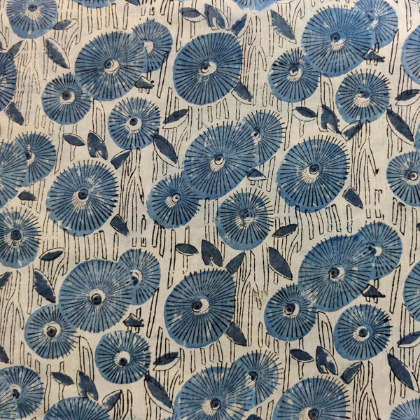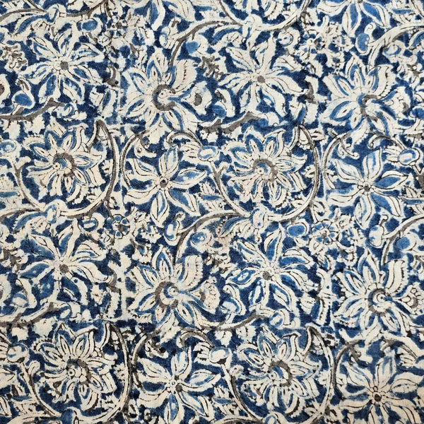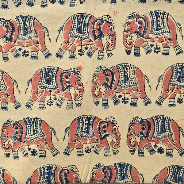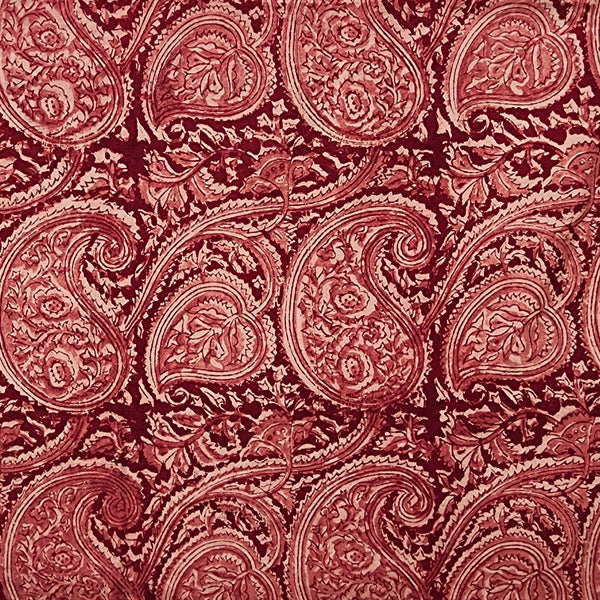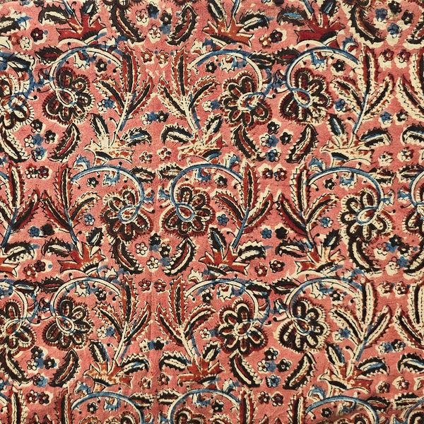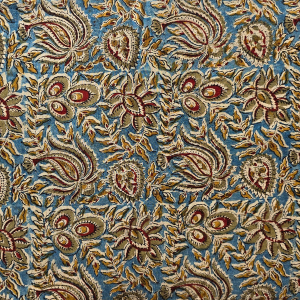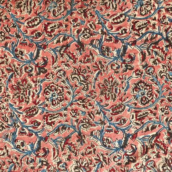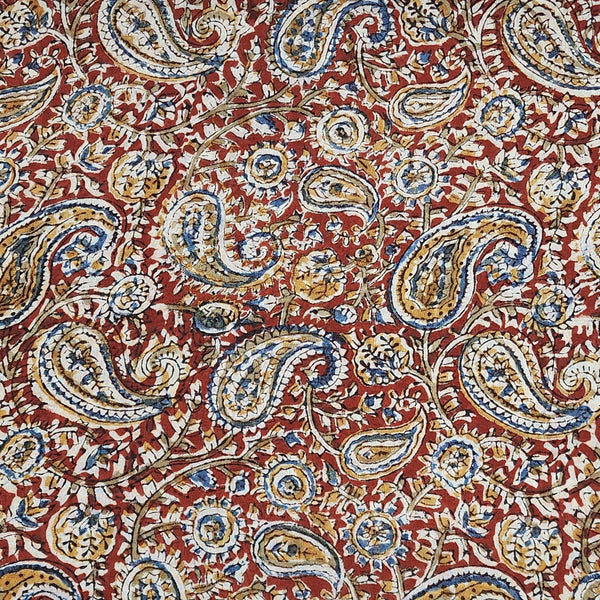 Pure Cotton Kalamkari Red With Blue Kairi Jaal Hand Block Print Fabric