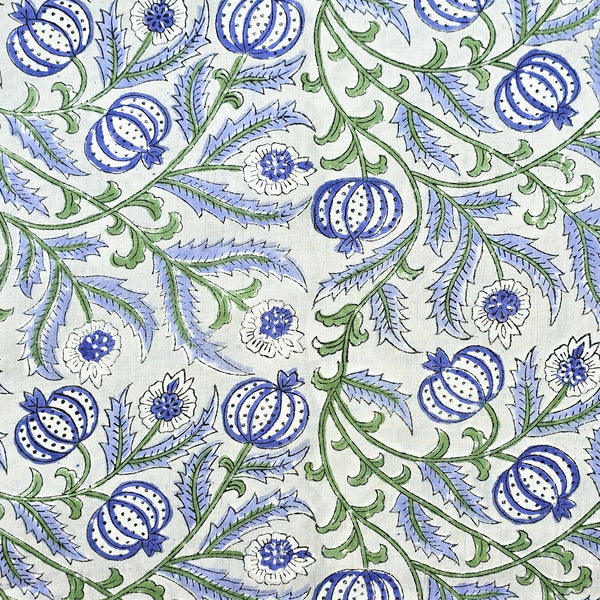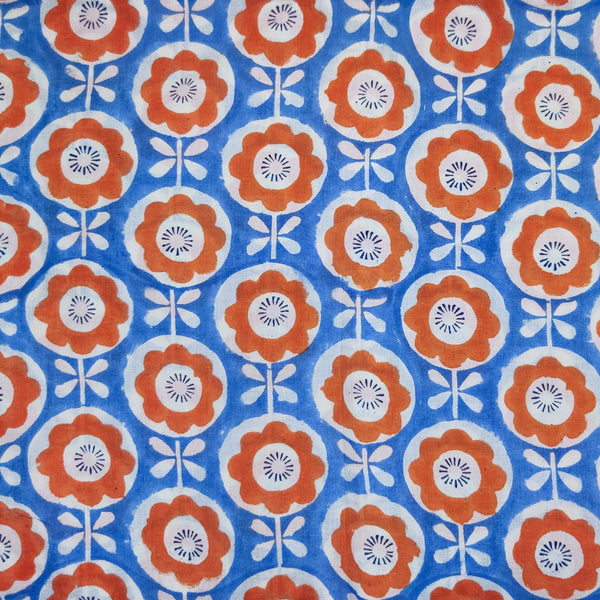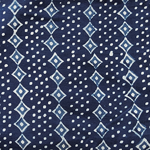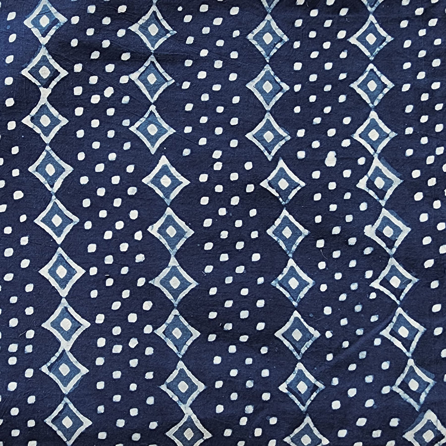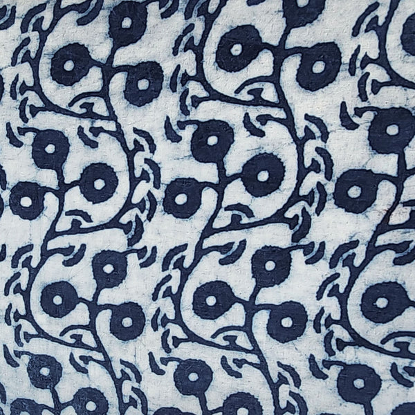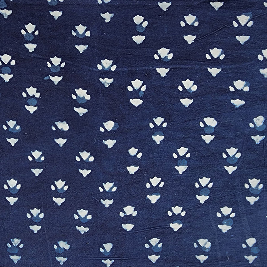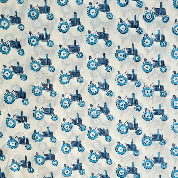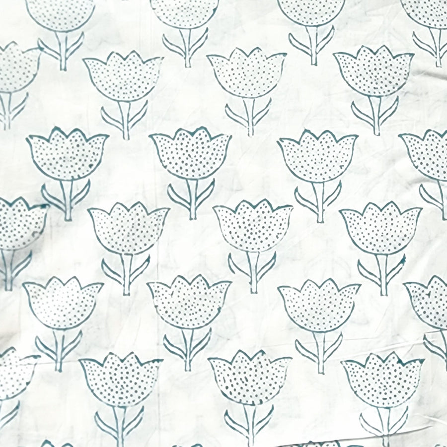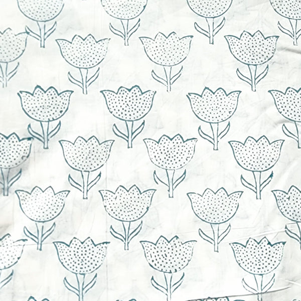 (PRE-CUT 1.95 METER) Pure Cotton Jaipuri White With Blue Scooty Hand Block Print Fabric