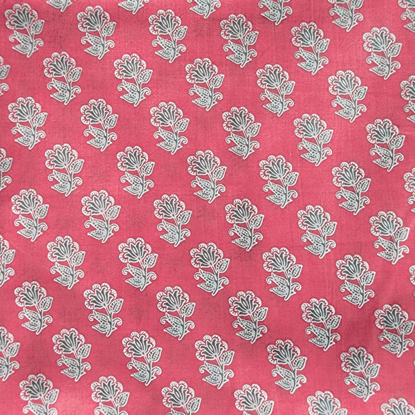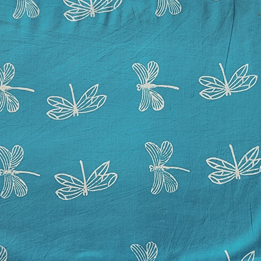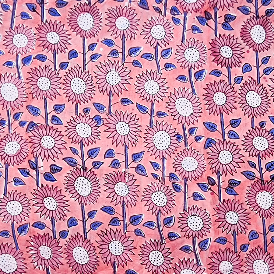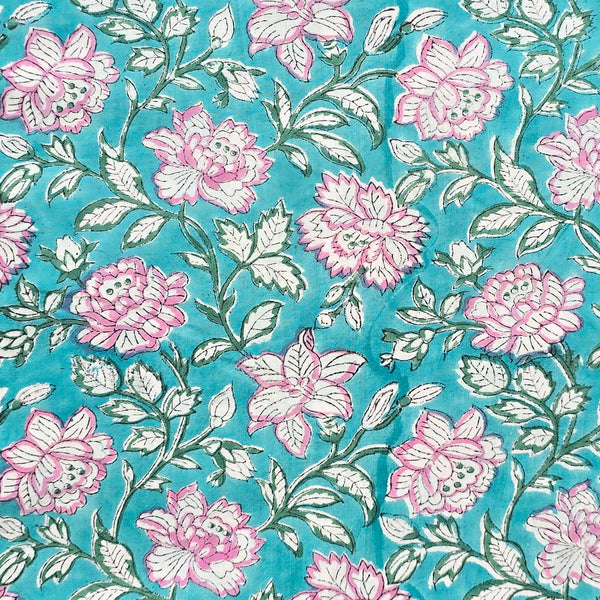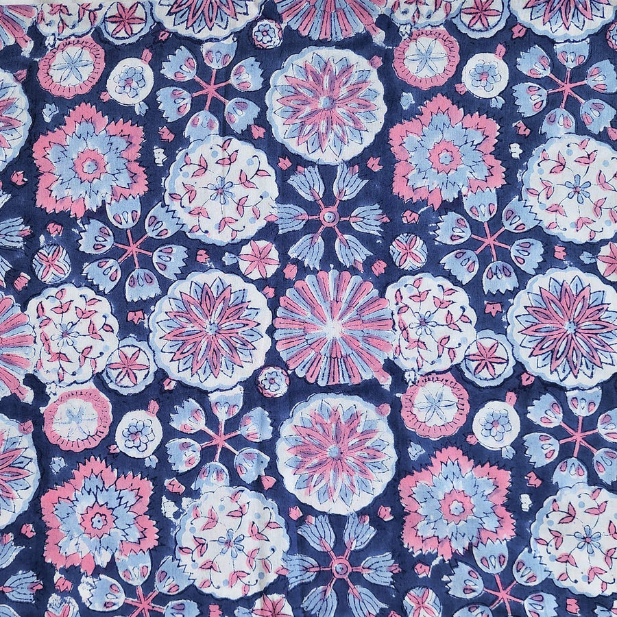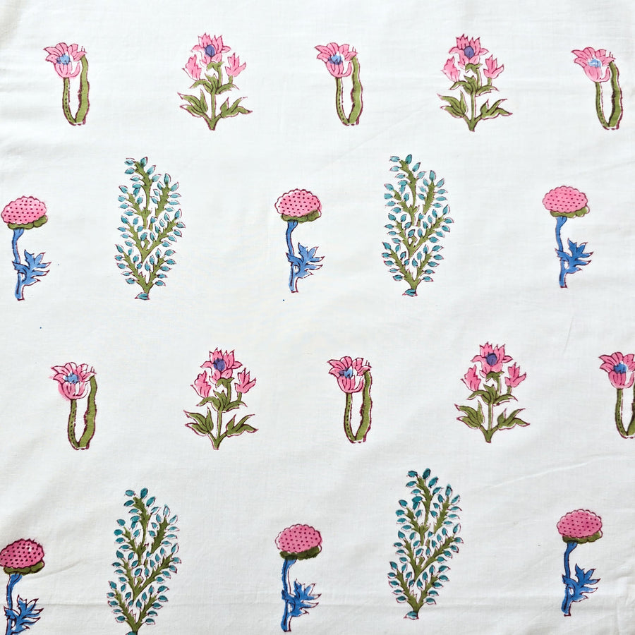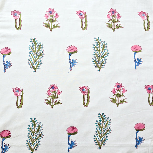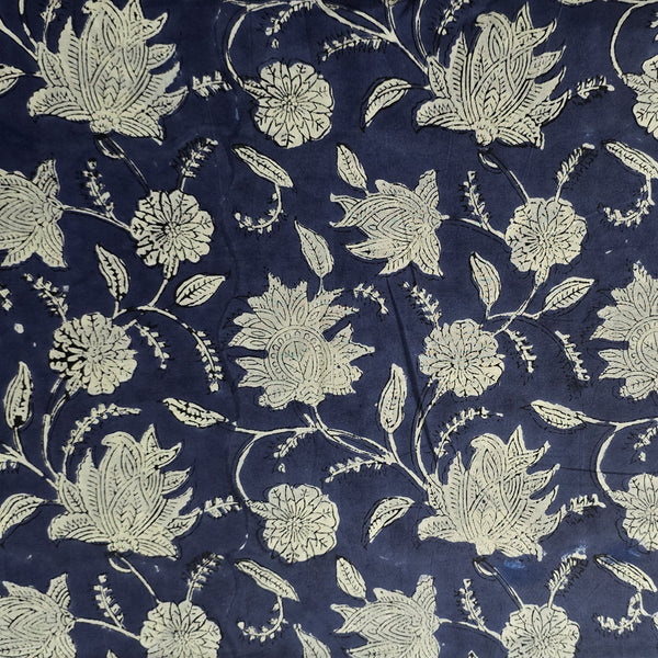 (PRE-CUT 1.95 METER) Pure Cotton Jaipuri White With Blue Scooty Hand Block Print Fabric