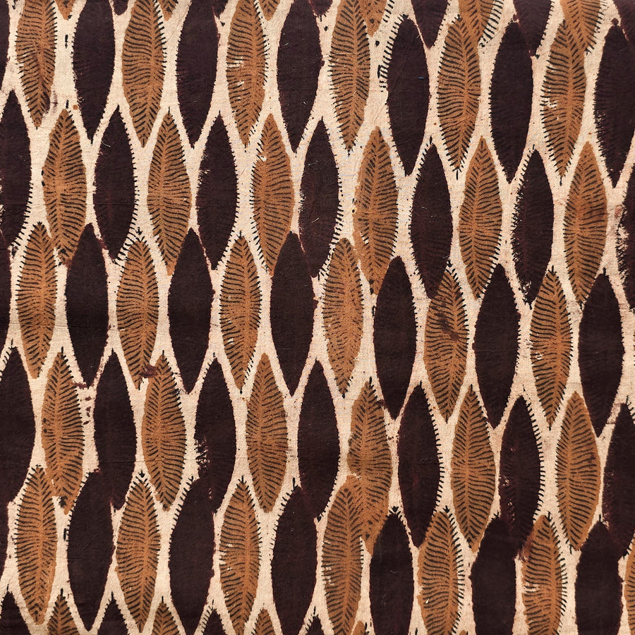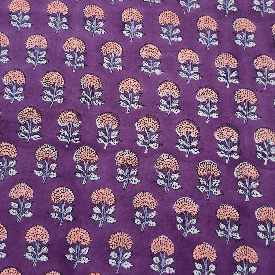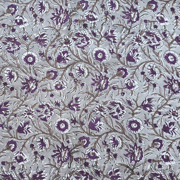 (Pre-Cut 1.60 Meter) Pure Cotton Dabu Purple With Leaves Creeper Hand Block Print Fabric