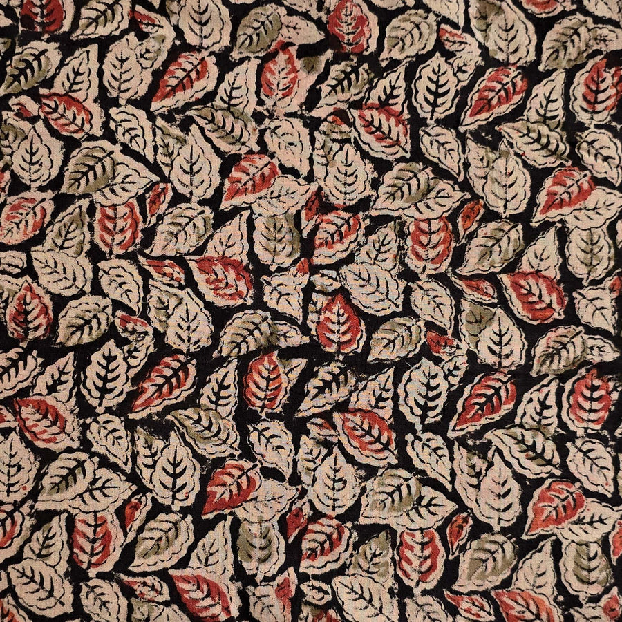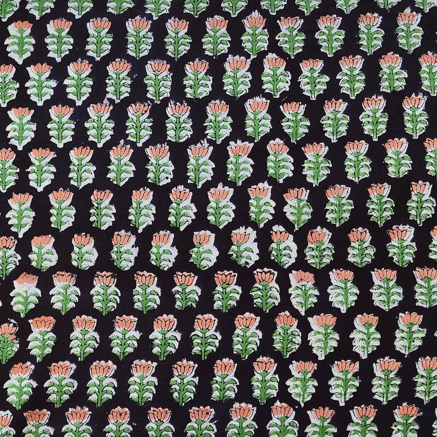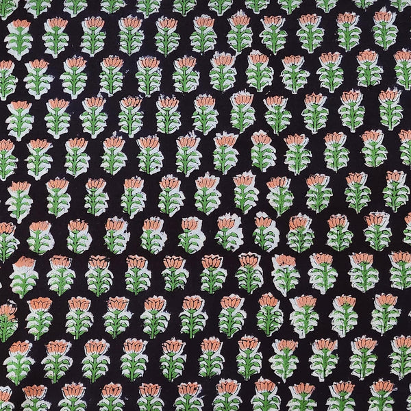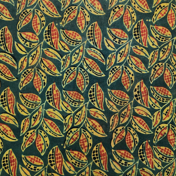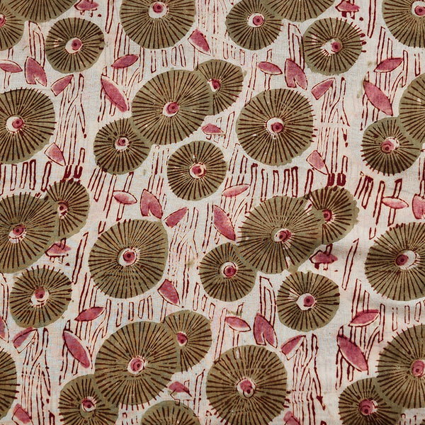 (PRE-CUT 2.30 METER) Pure Cotton Dabu Green With Plant Motif Hand Block Print Fabric