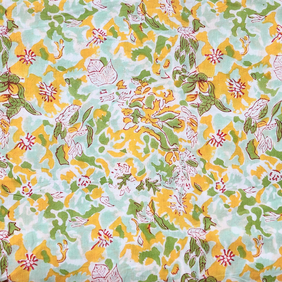 (PRE-CUT 1.45 METER)Pure Cotton Yellow Green With Flower Motif Screen Print Fabric