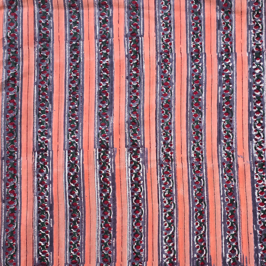 (PRE-CUT 1.55 METER)Pure Cotton Jaipuri White With Green Stripes Hand Block Print Fabric