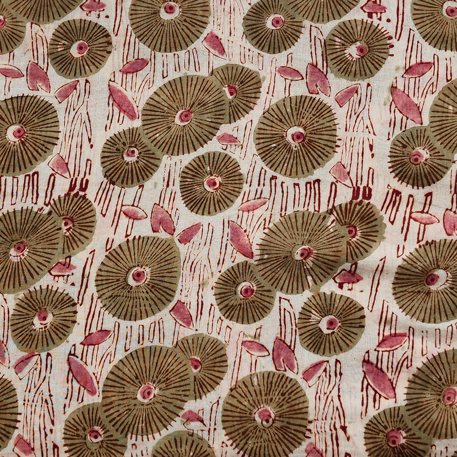 (PRE-CUT 1.30 METER) Pure Cotton Ajrak Green With Mehendi Art Hand Block Print Fabric