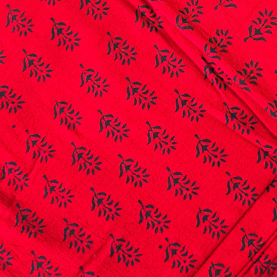 (PRE-CUT 1.40 METER) Pure Cotton Handloom Blue With Red Motif Woven Fabric