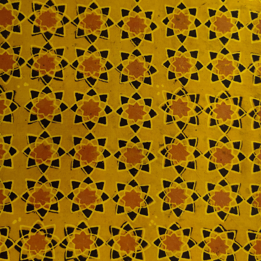 (PRE-CUT 2.15 METER) Pure Cotton Handloom Yellow With Tiny Motif And Border Woven Fabric