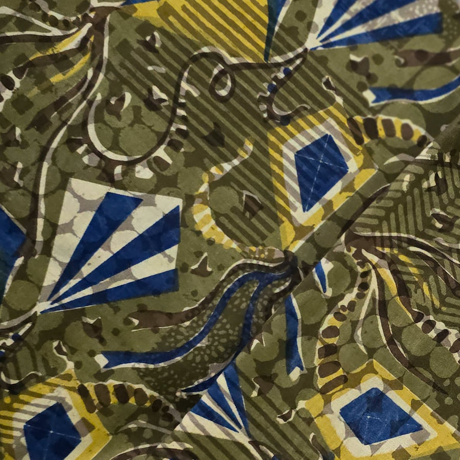 (PRE-CUT 1.20 METER)Pure Cotton Ikkat Ink Blue With White Weaves Woven Fabric