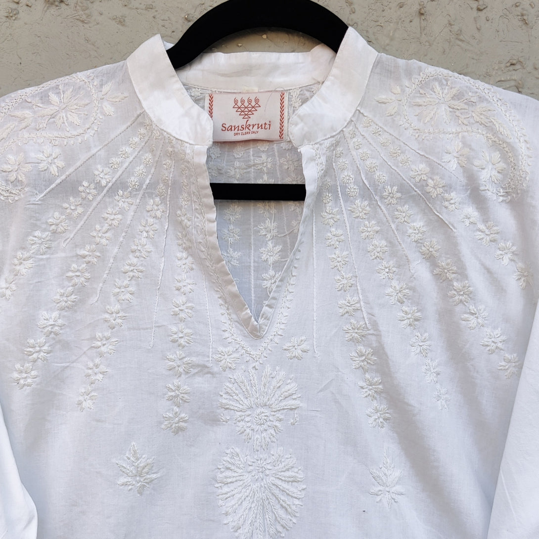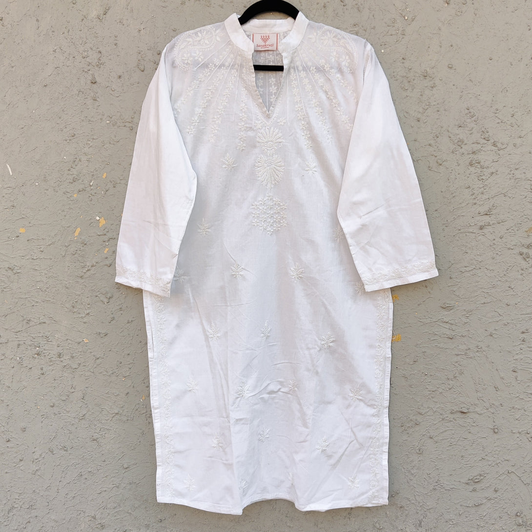 (2XL) INDIRA - Pure Cotton White Lucknowi Chikenkari Mul Kurta