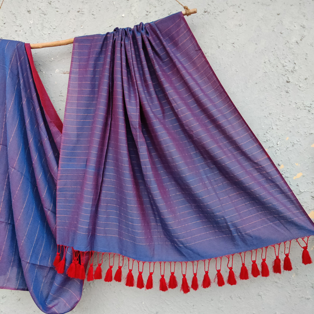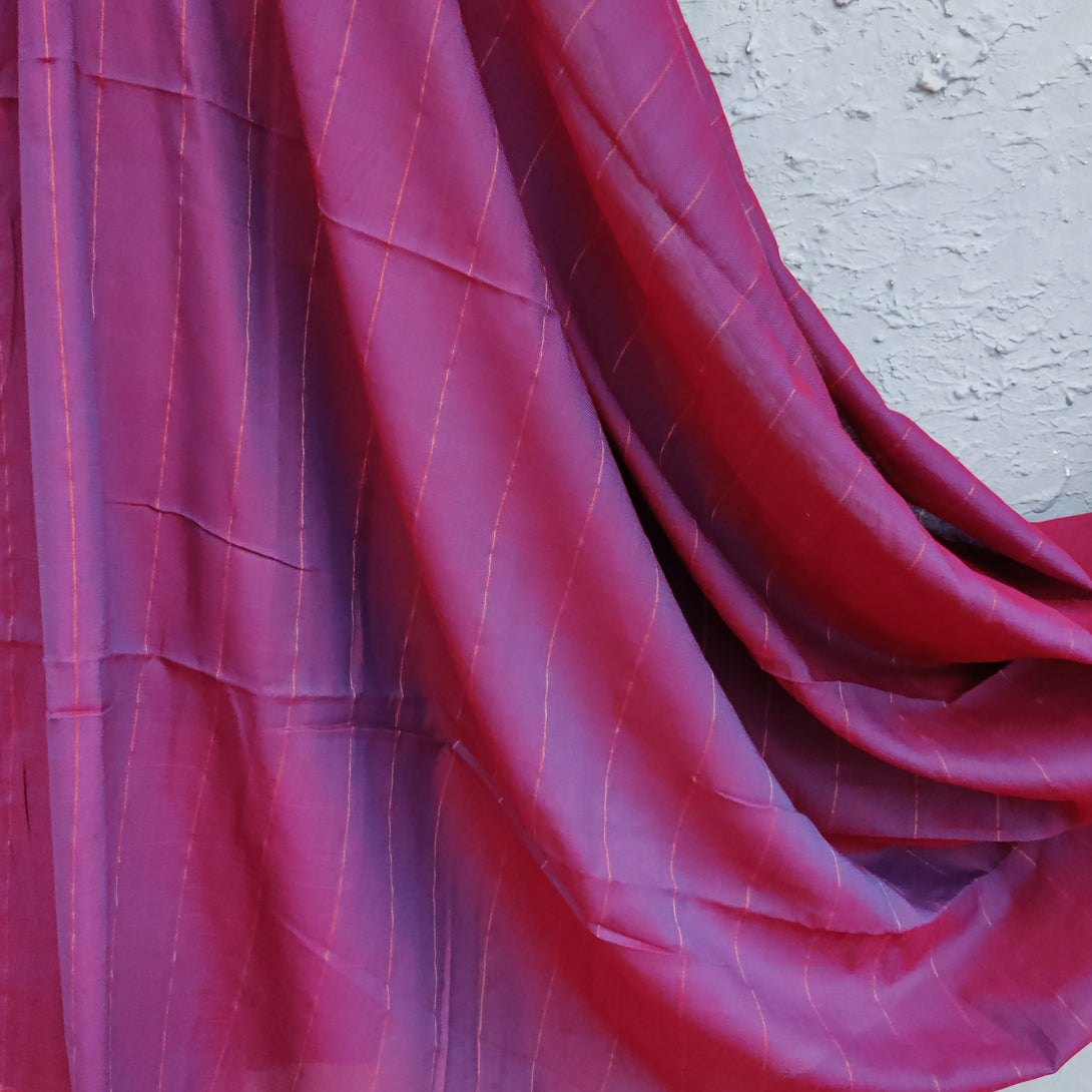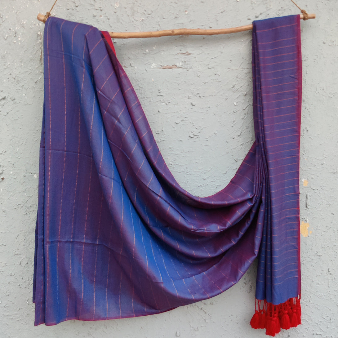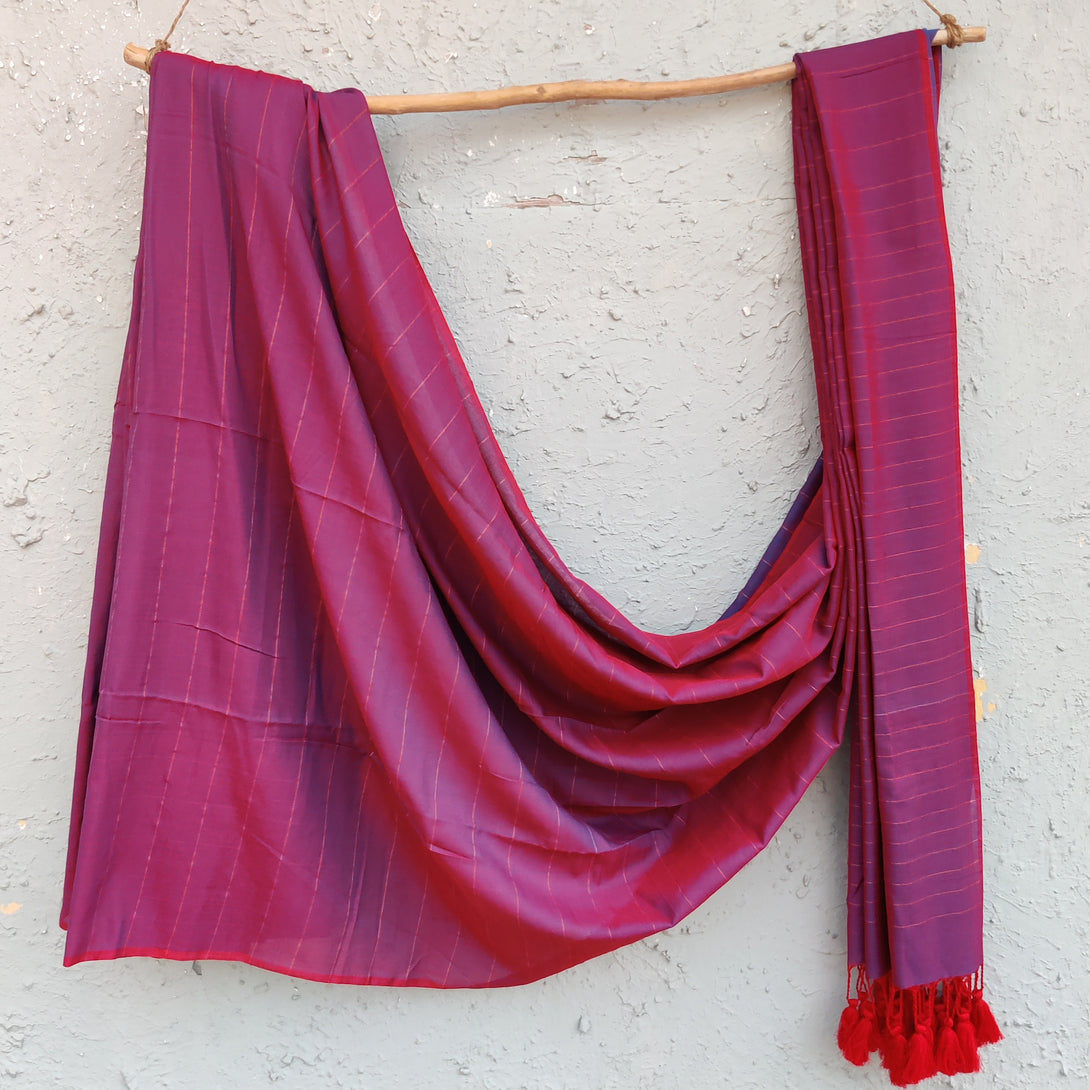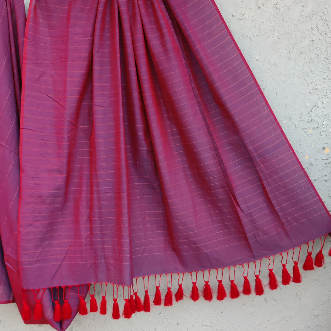 AHANA - Reversible Cotton Saree Purple Maroon With old Stripes