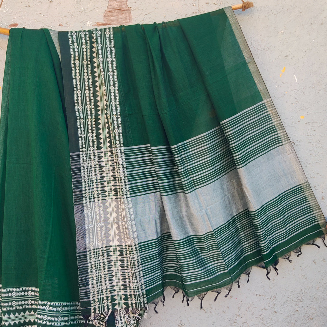 Anika-Pure Cotton Handloom Green Saree