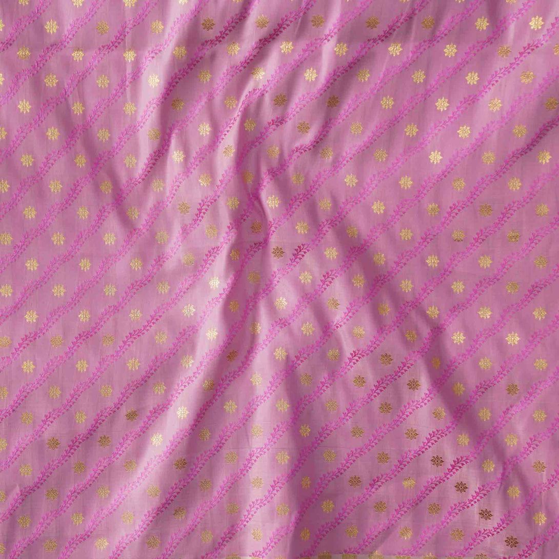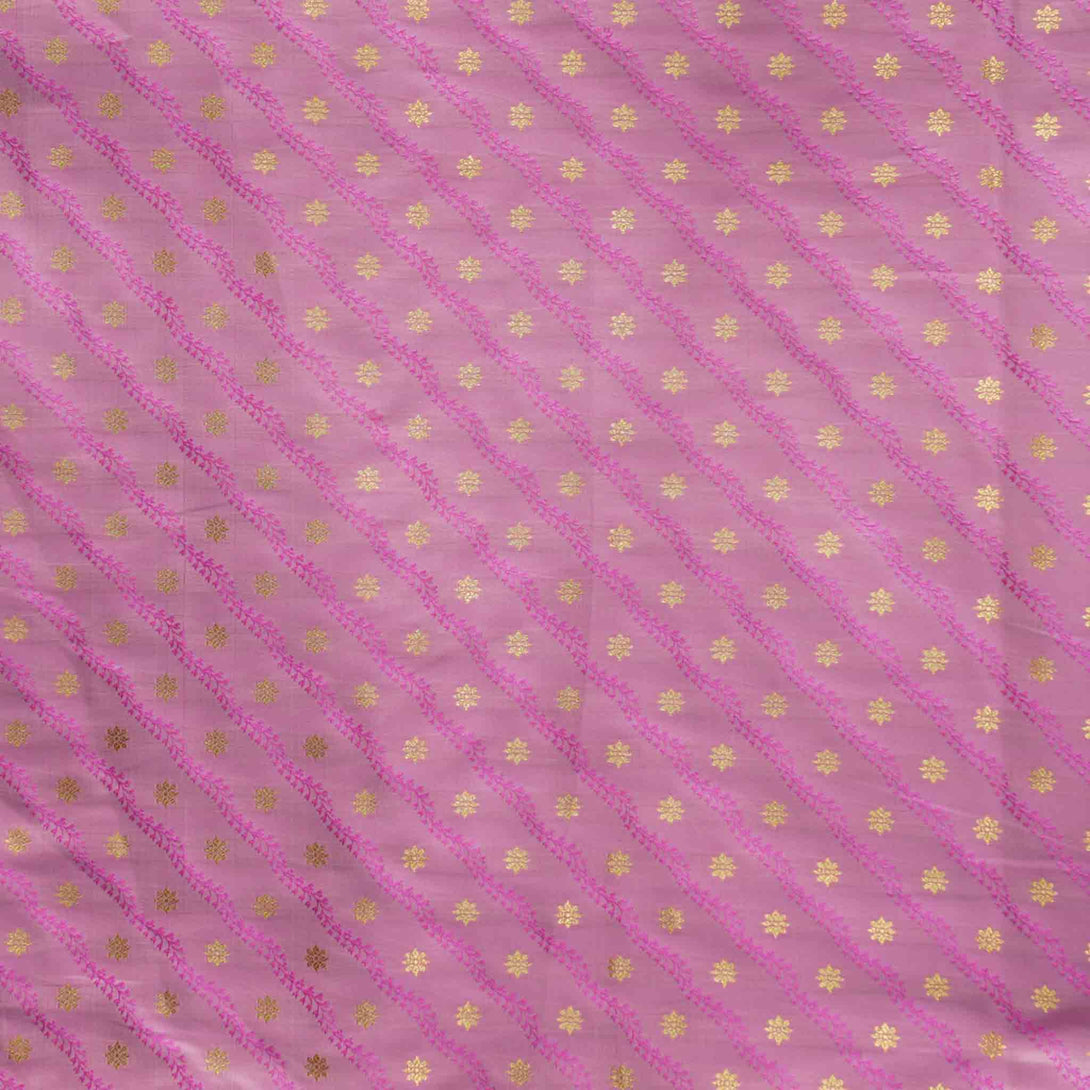 Baby Pink Brocade With Golden Flower Creeper Woven Fabric