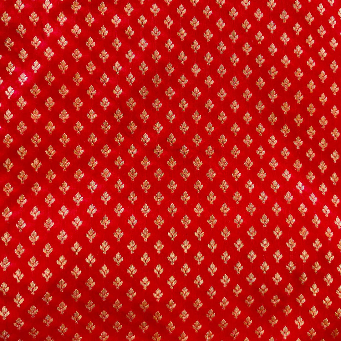 Banarasi Red Brocade With Tiny Gold Woven Butti Fabric