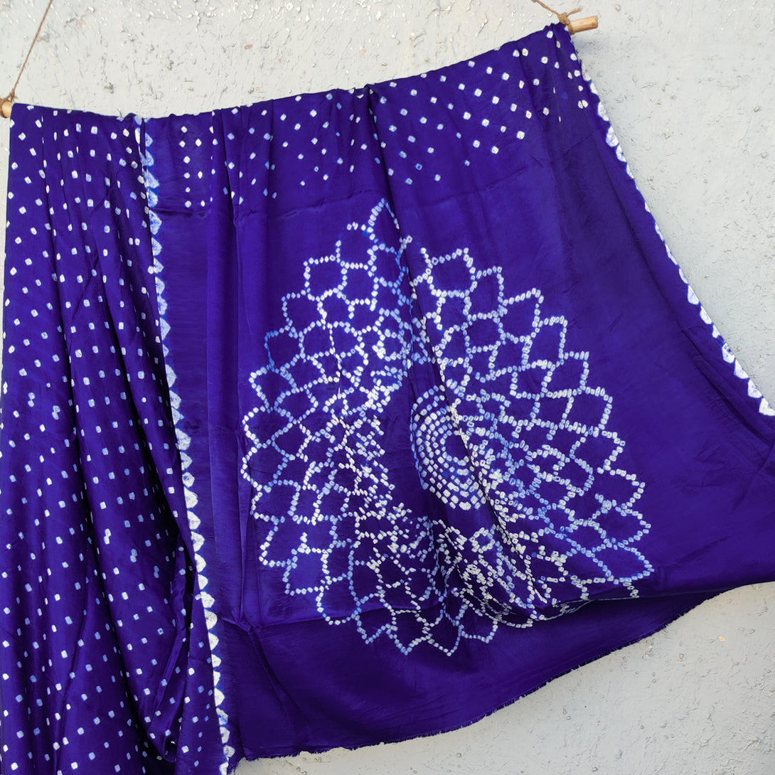 BANDHANI - Modal Silk Blue Bandhani Saree