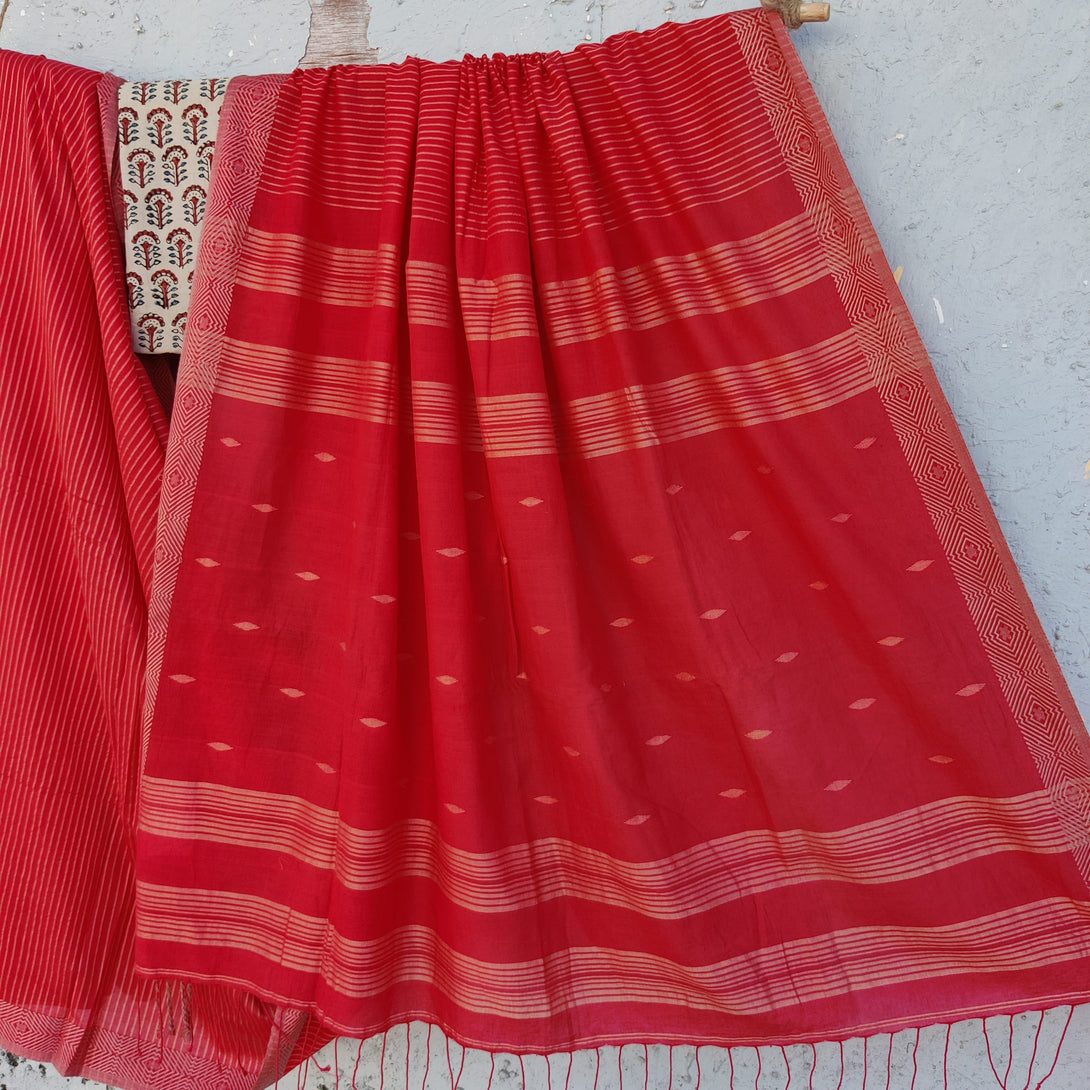 BENGAL KI RANI - Pure Cotton Rust Handwoven Saree