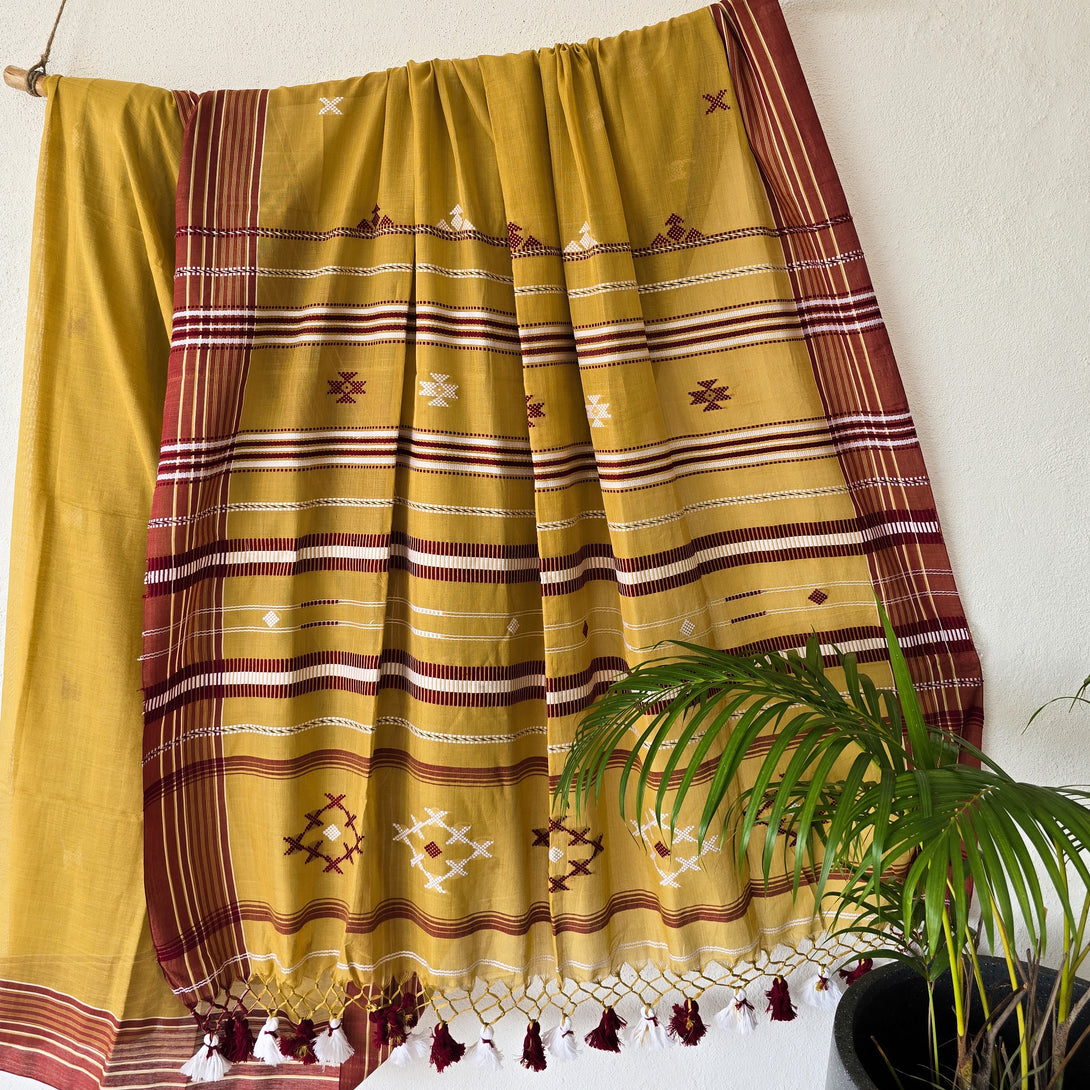 BHUJODI- Pure Cotton Mustard With Brown Handwoven Bhujodi Saree